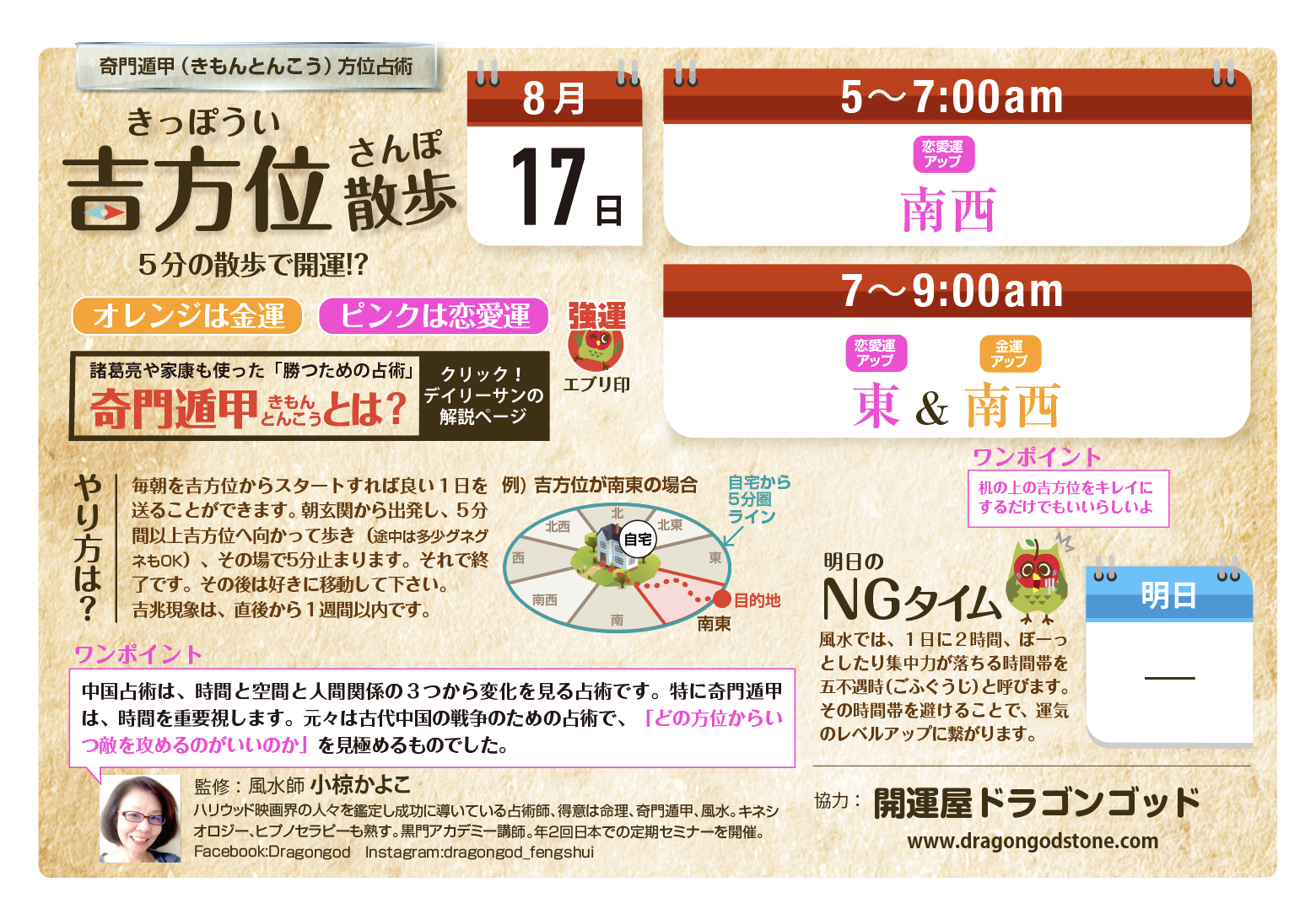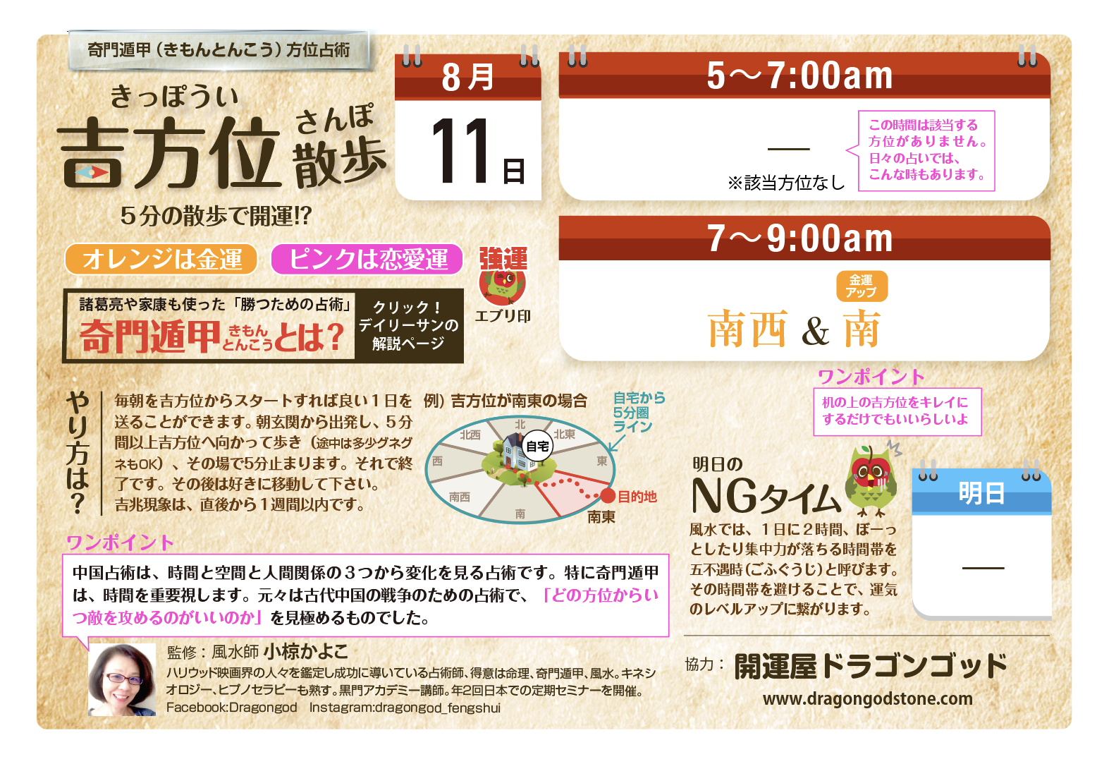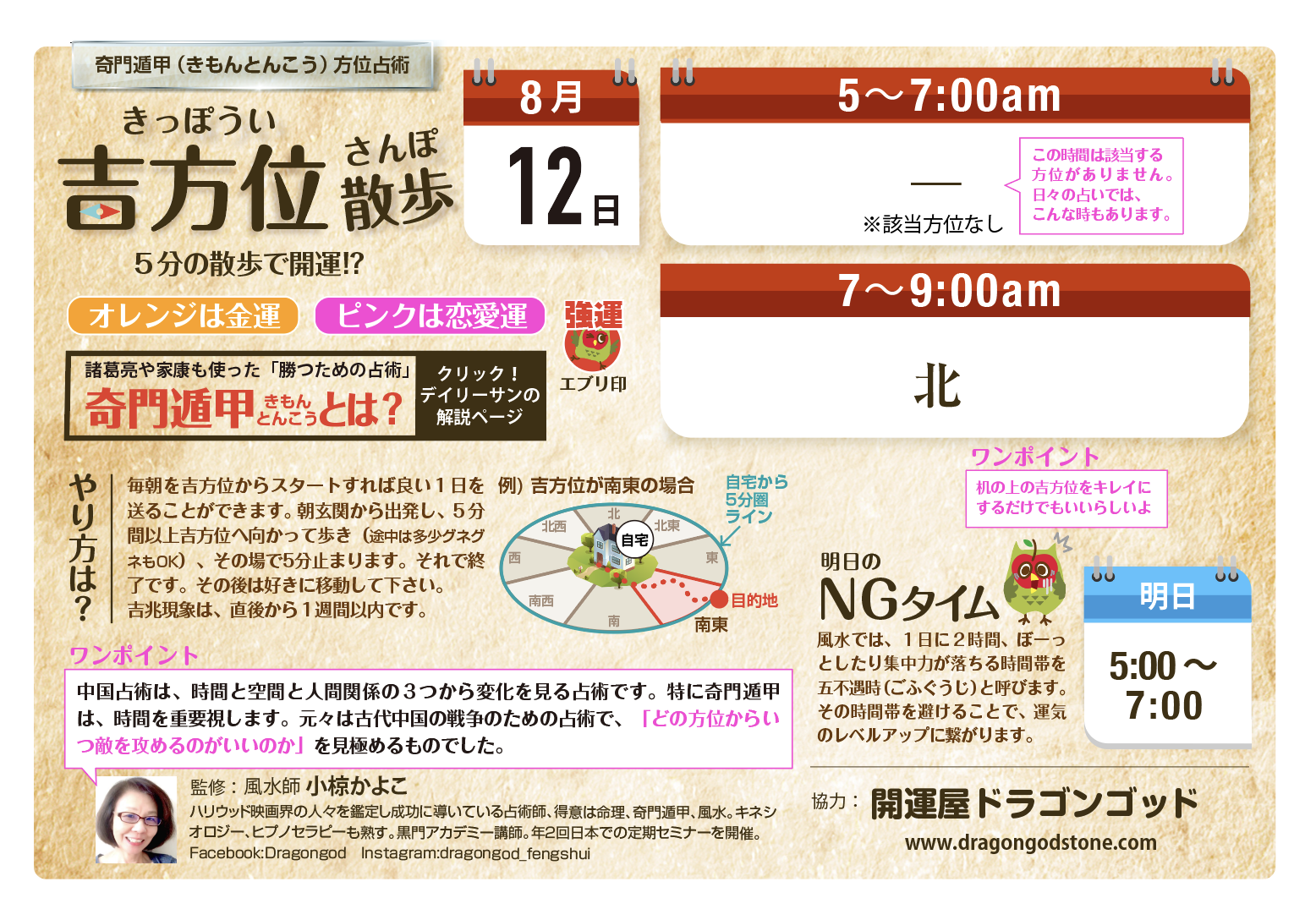 【明日と週末の運気】吉方位散歩 8月13日(土)