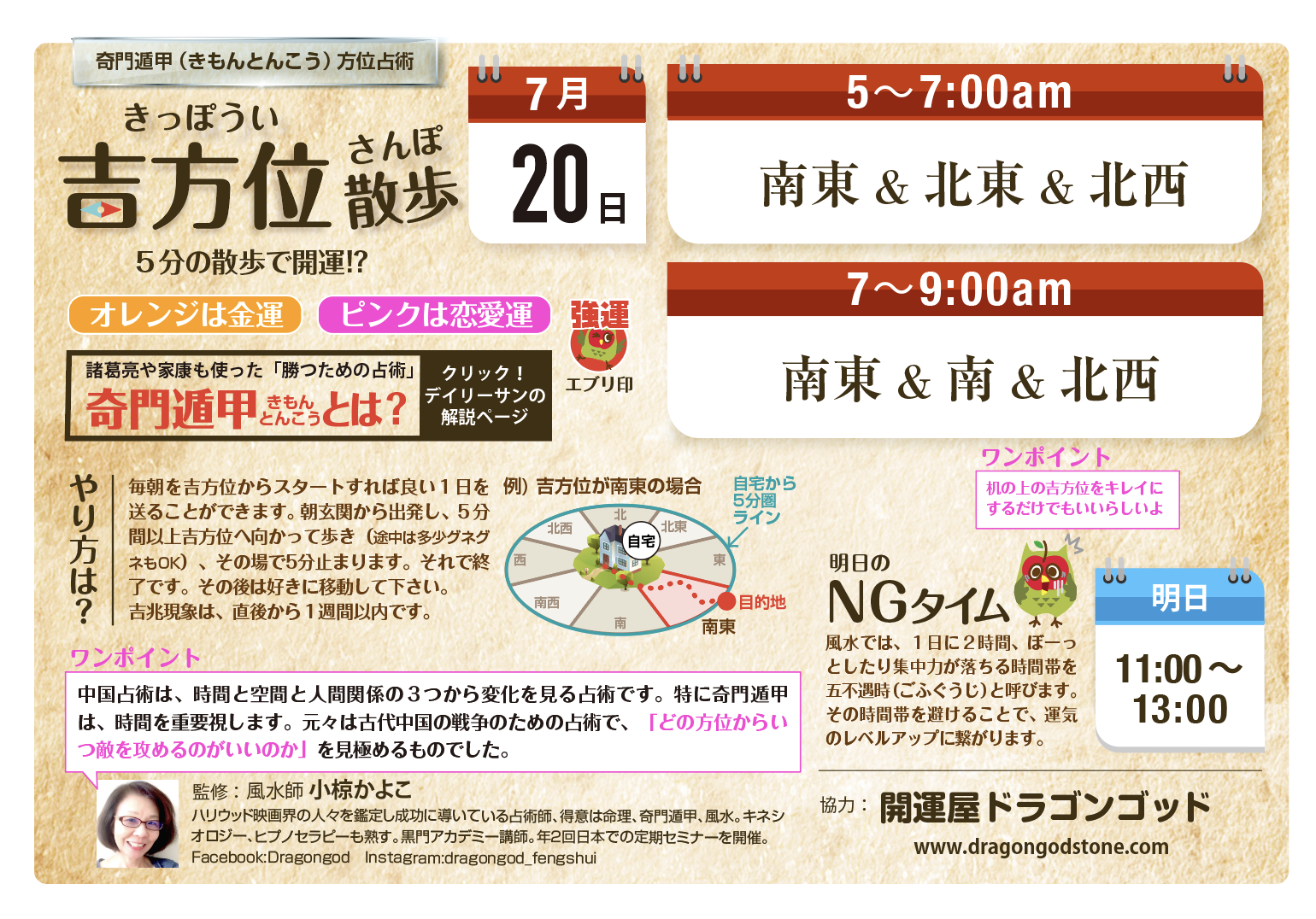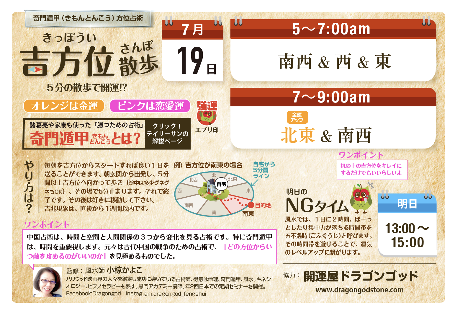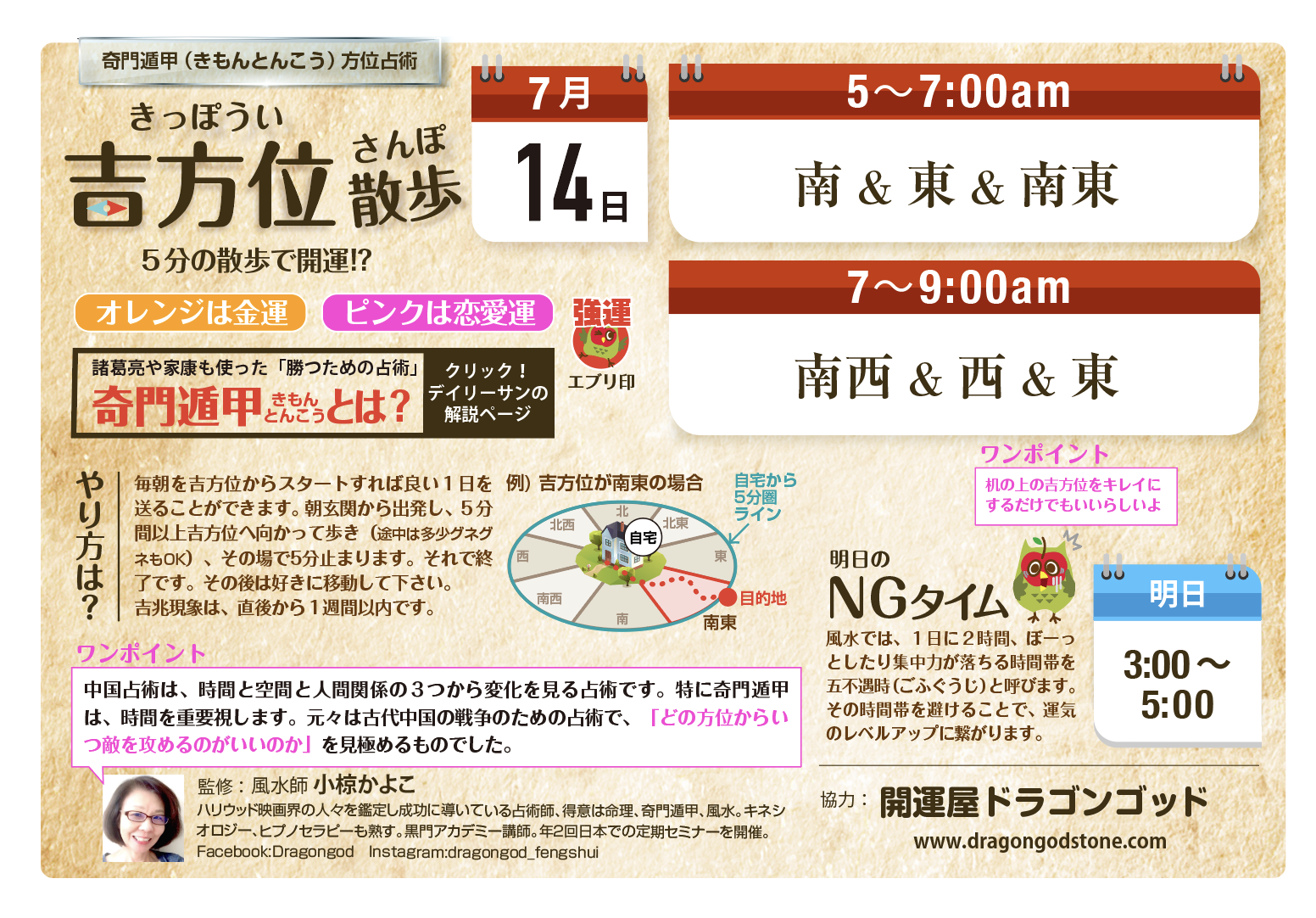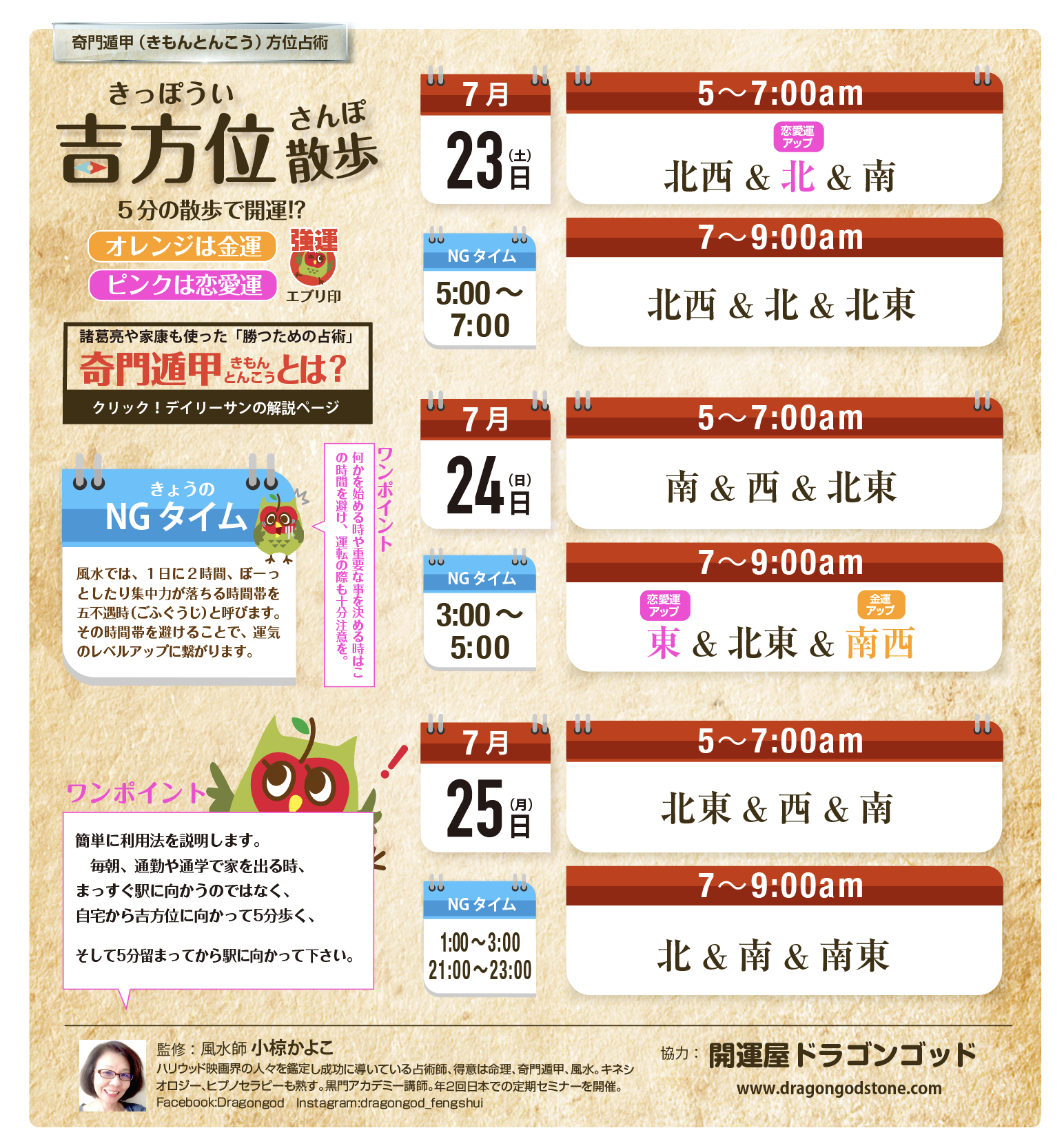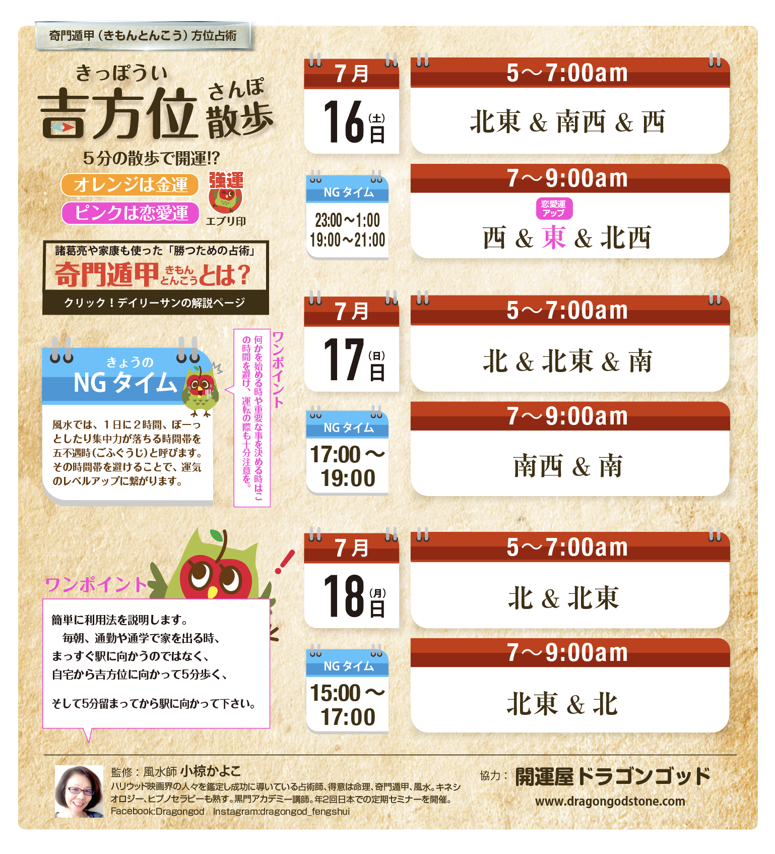 【明日と週末の運気】吉方位散歩 7月16日(土)〜18日(月)
