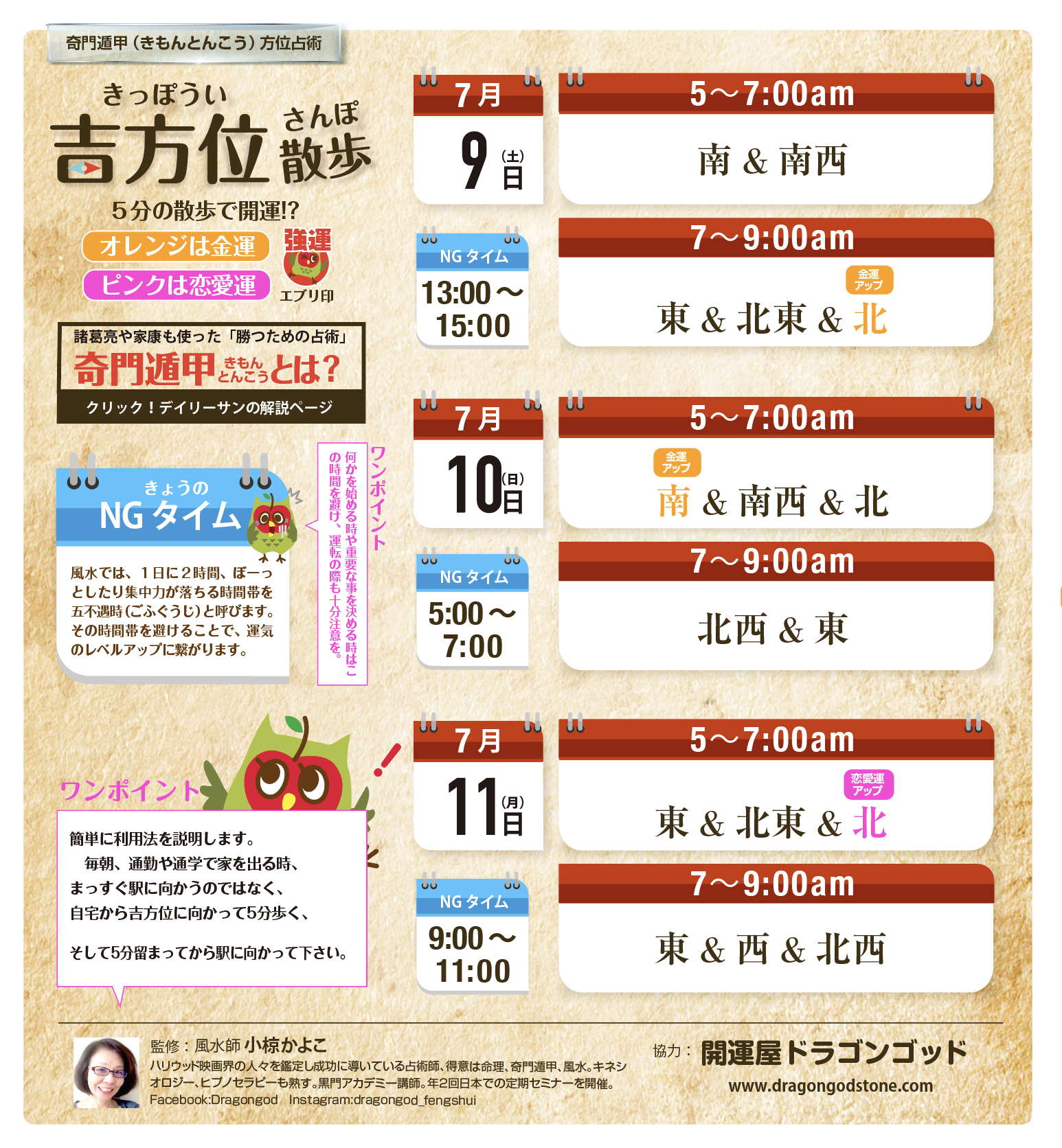 【明日と週末の運気】吉方位散歩 7月9日(土)〜11日(月)