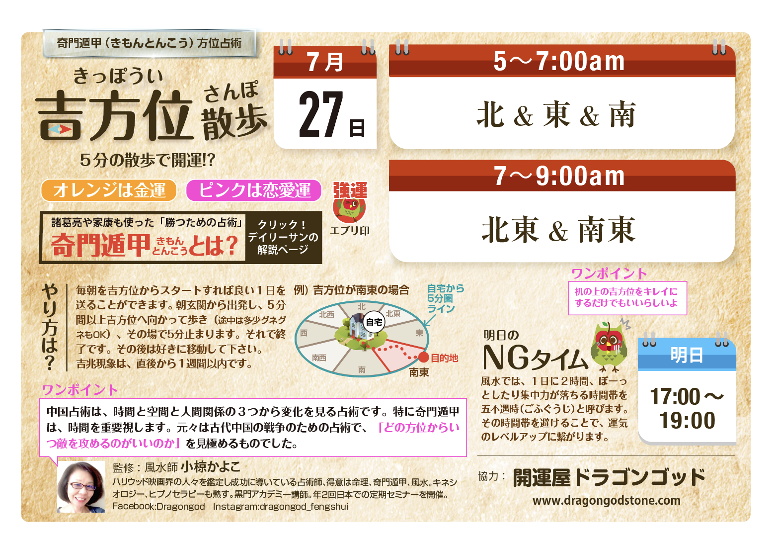 【明日と週末の運気】吉方位散歩 7月30日(土)〜8月1日(月)
