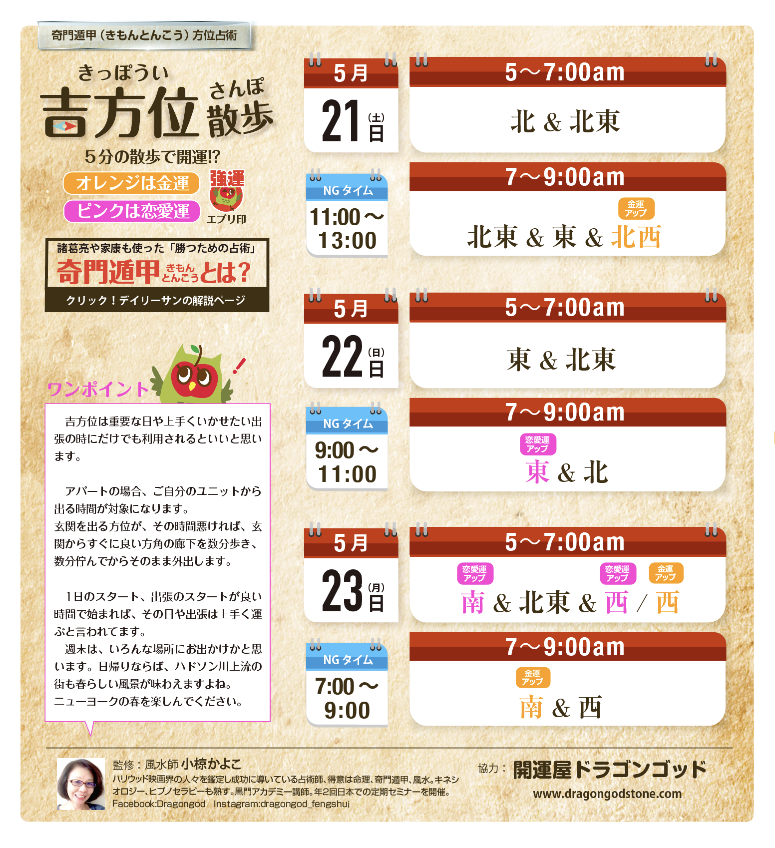 【明日の運気】吉方位散歩 5月21日(土)〜23日(月)