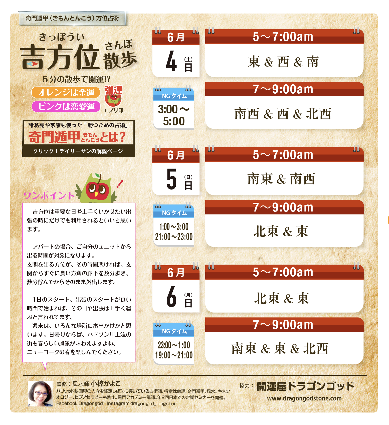 【明日と週末の運気】吉方位散歩 6月4日(土)〜6月6日(月)