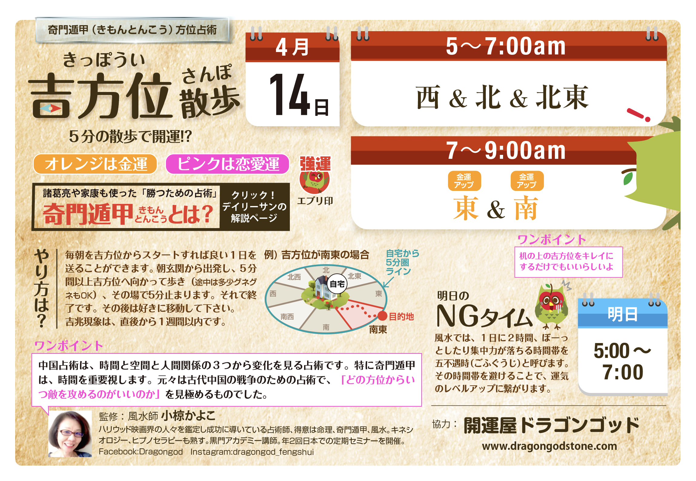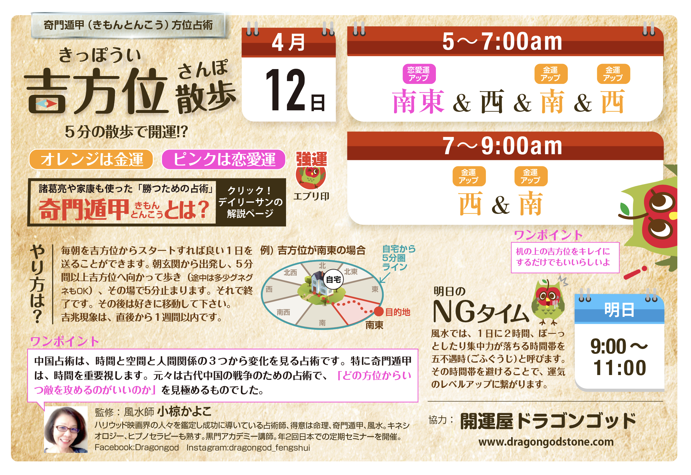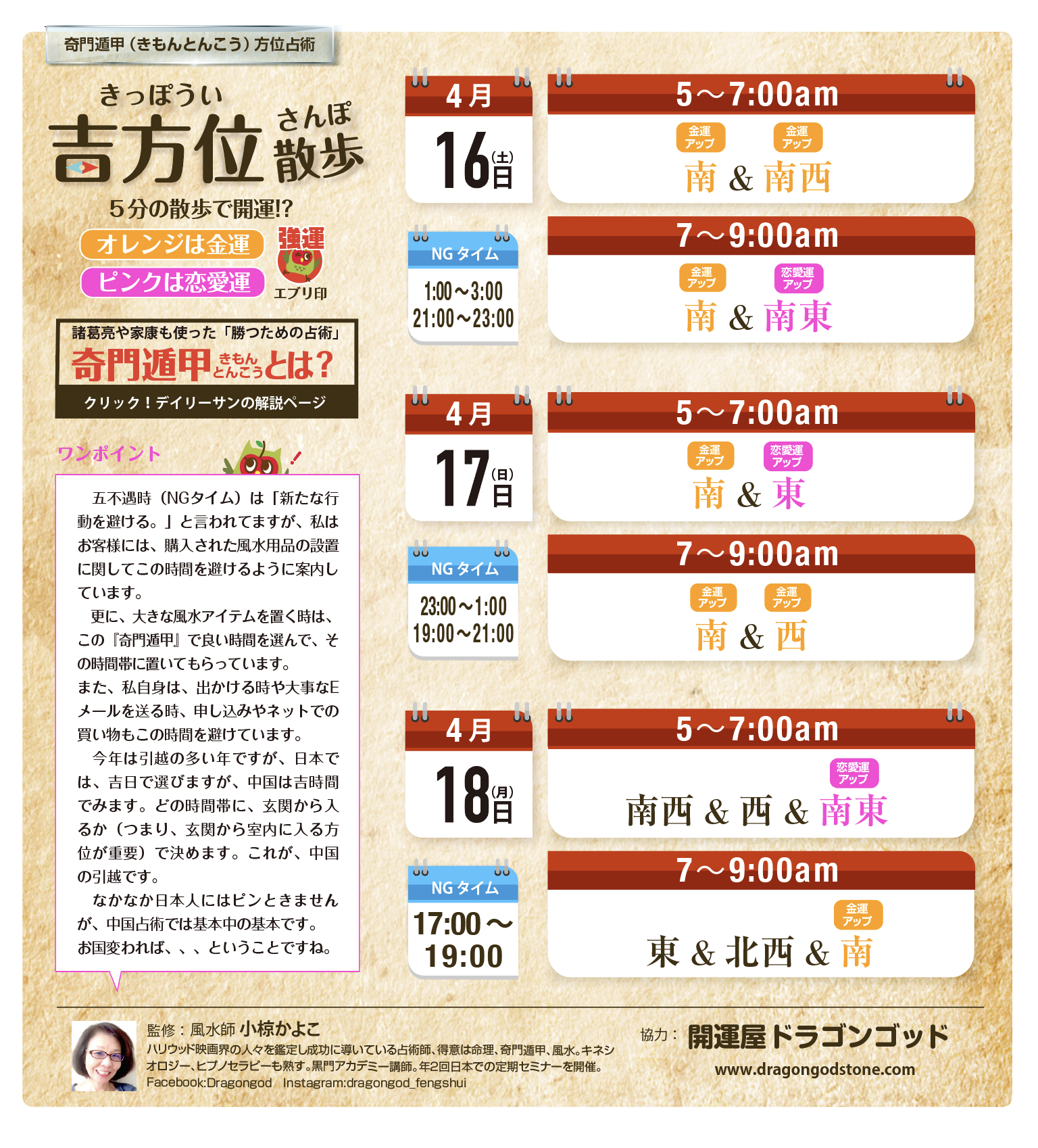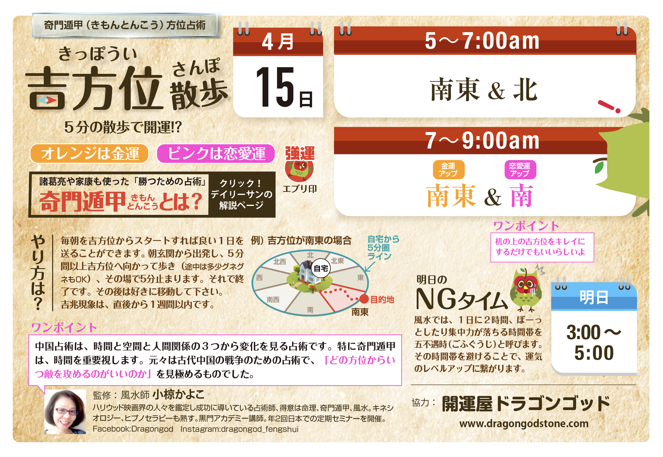 【明日と週末の運気】吉方位散歩 4月16日(土)