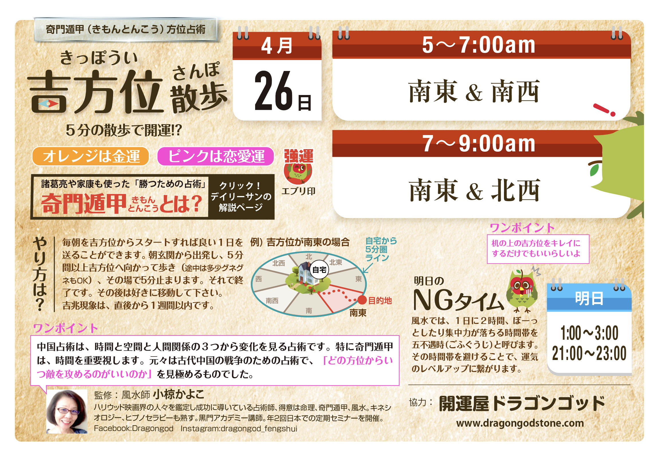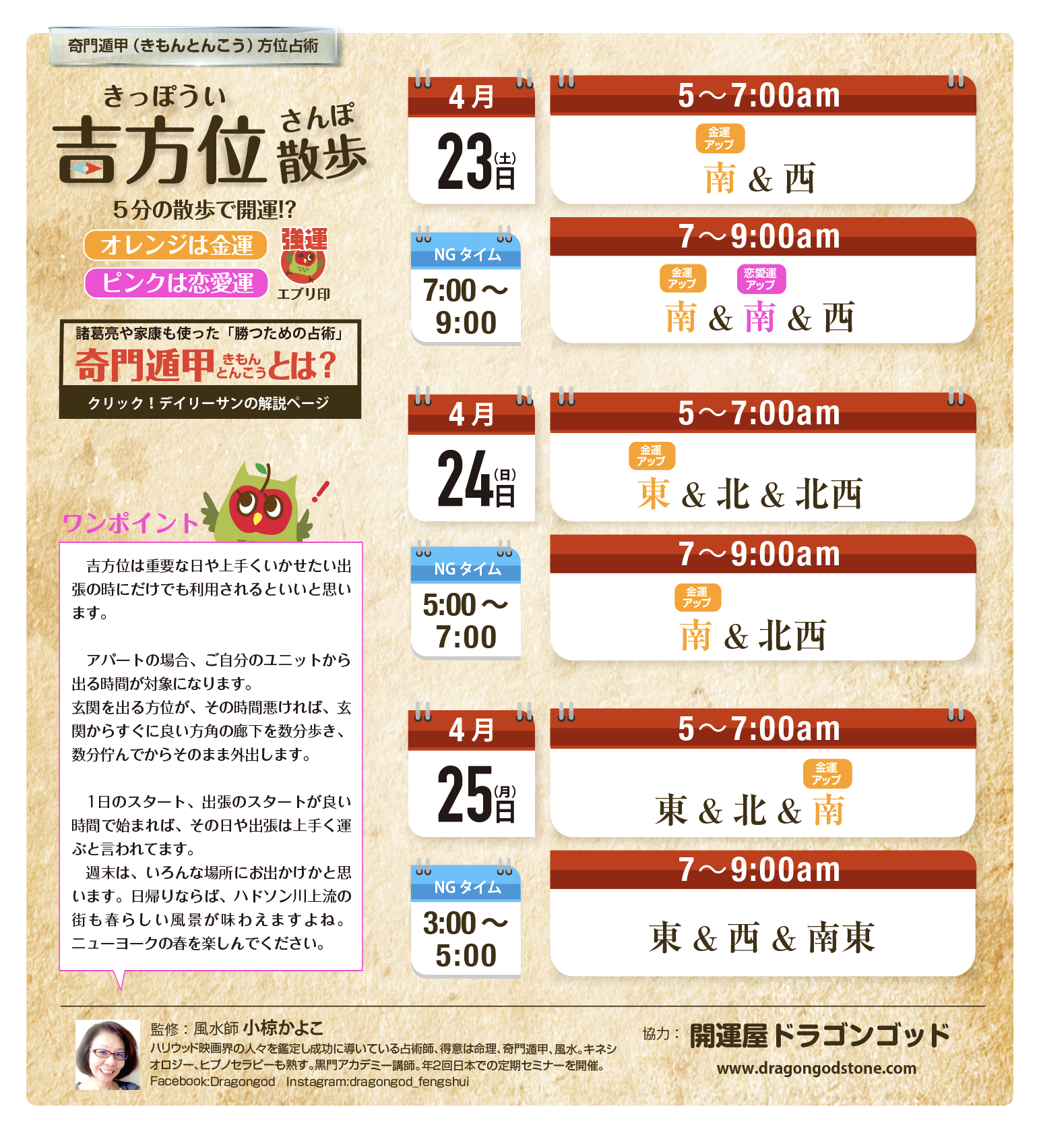 【明日と週末の運気】 吉方位散歩 4月23日(土)〜25日(月)
