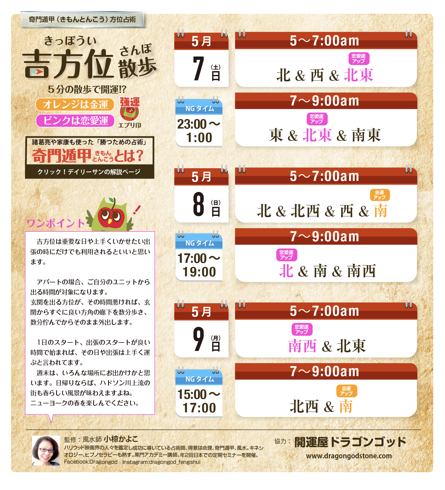 【明日と週末の運気】吉方位散歩 5月7日(土)〜9日(月)