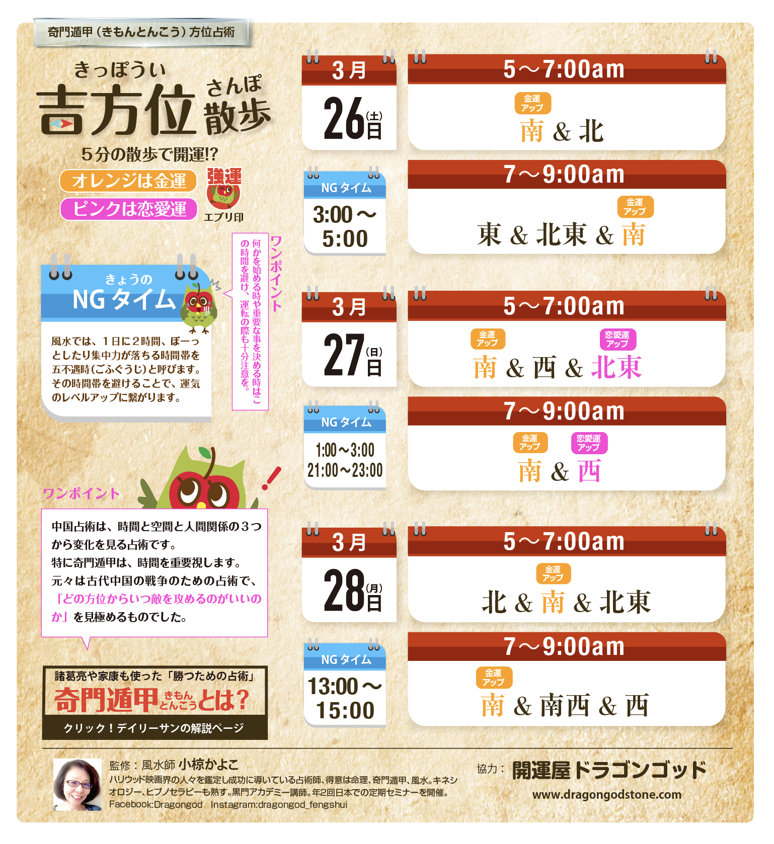 【明日と週末の運気】 吉方位散歩 3月19日(土)〜21日(月)