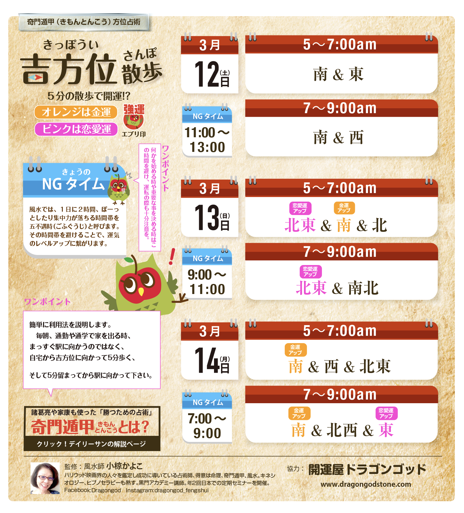 【明日と週末の運気】 吉方位散歩3月12日(土)〜14日(月)