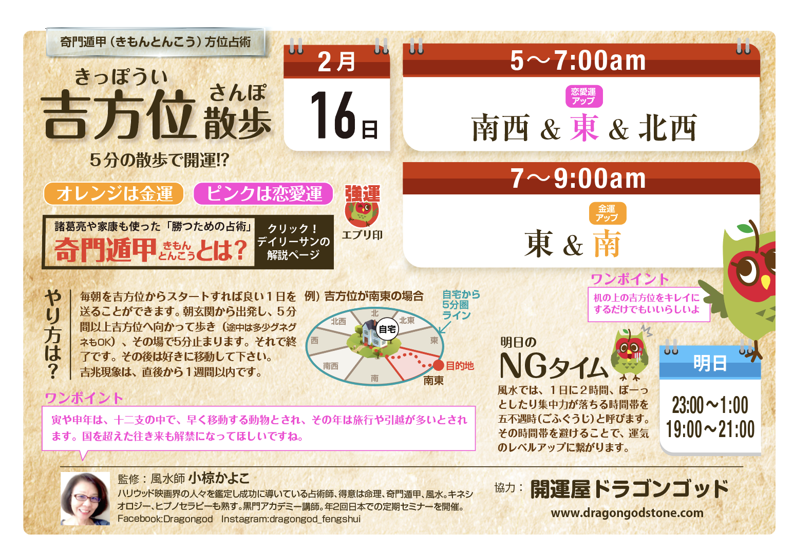 【明日と週末の運気】吉方位散歩 2月12日(土)〜14日(月)