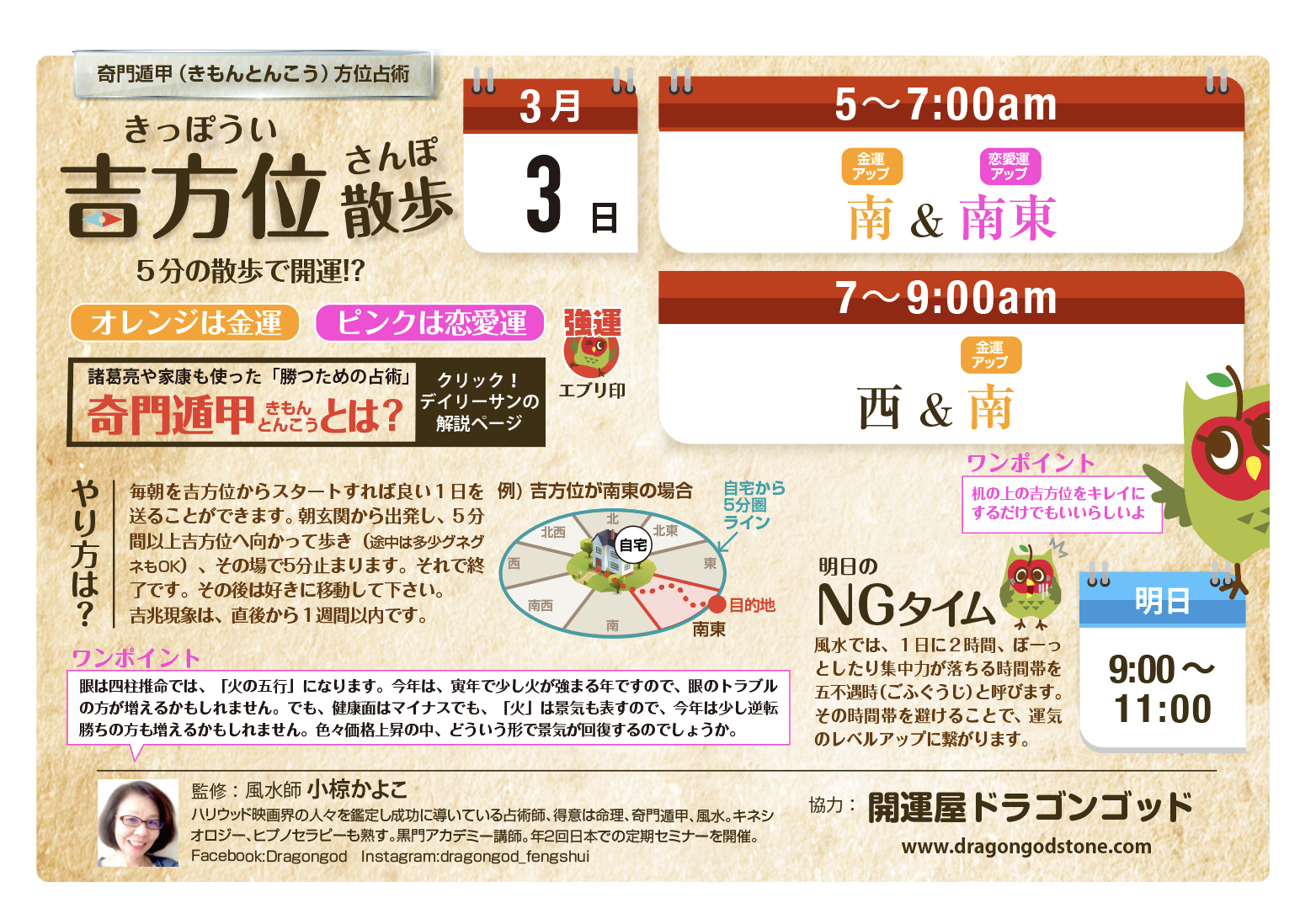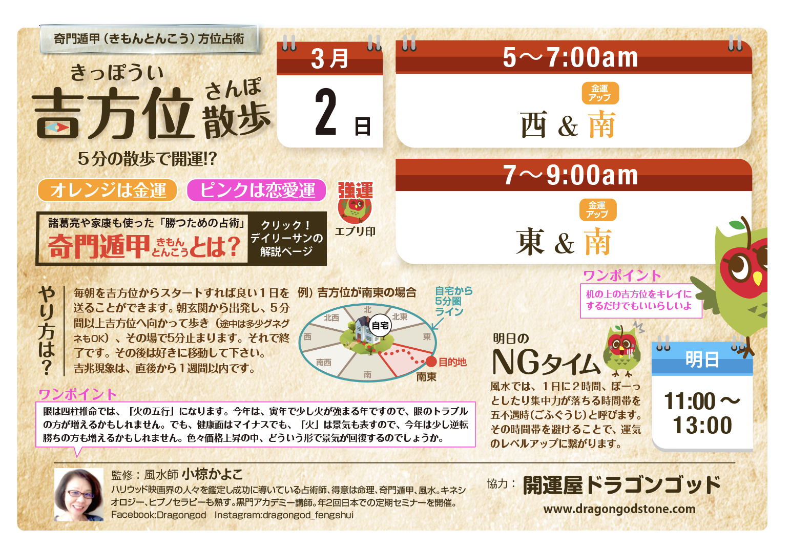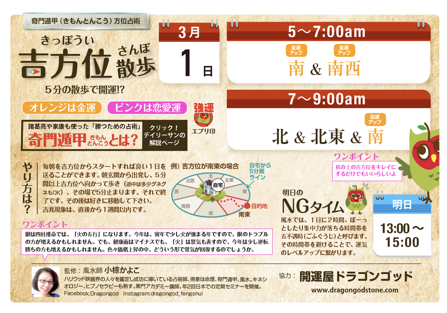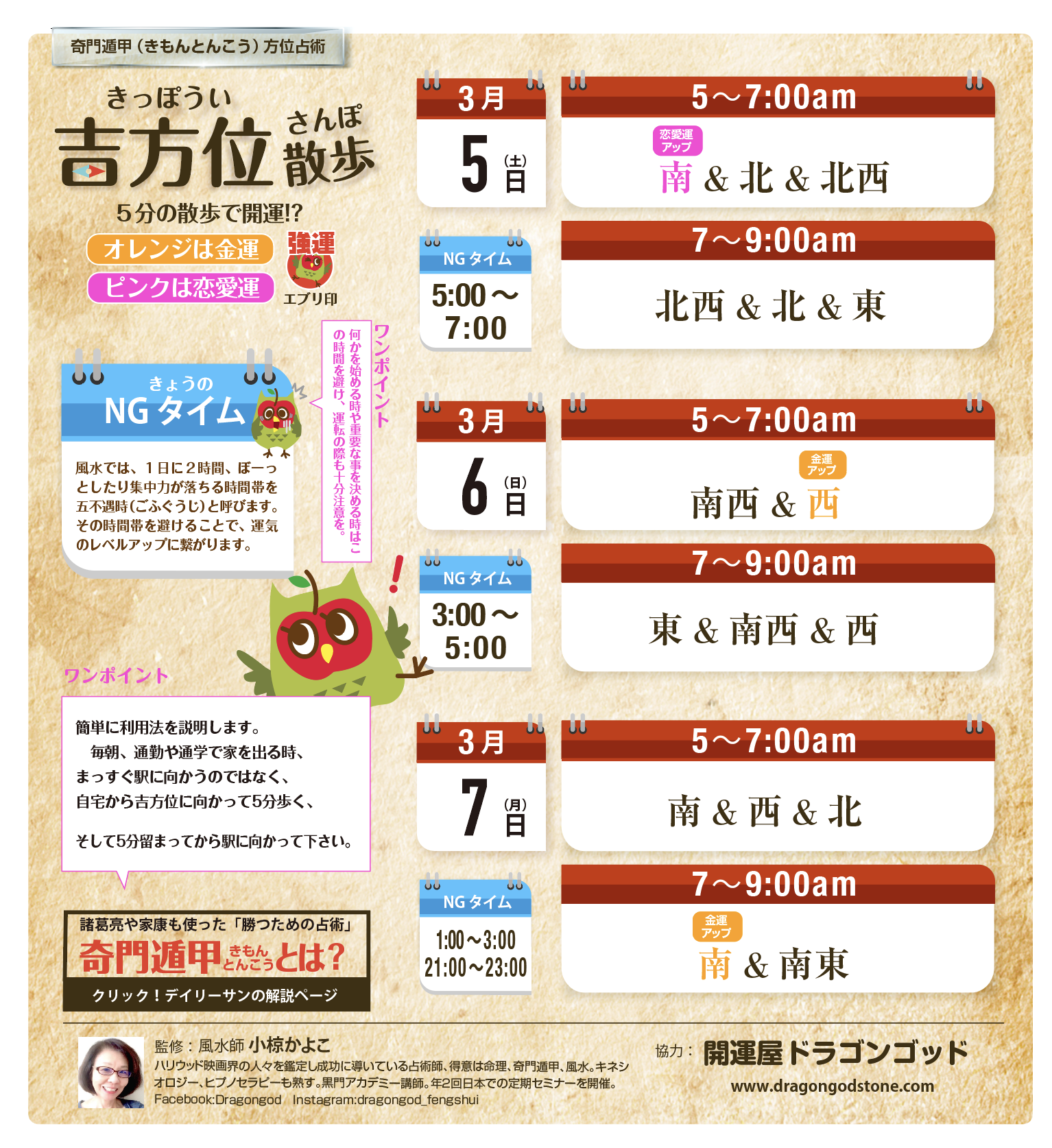 【明日と週末の運気】吉方位散歩 3月5日(土)〜7日(月)