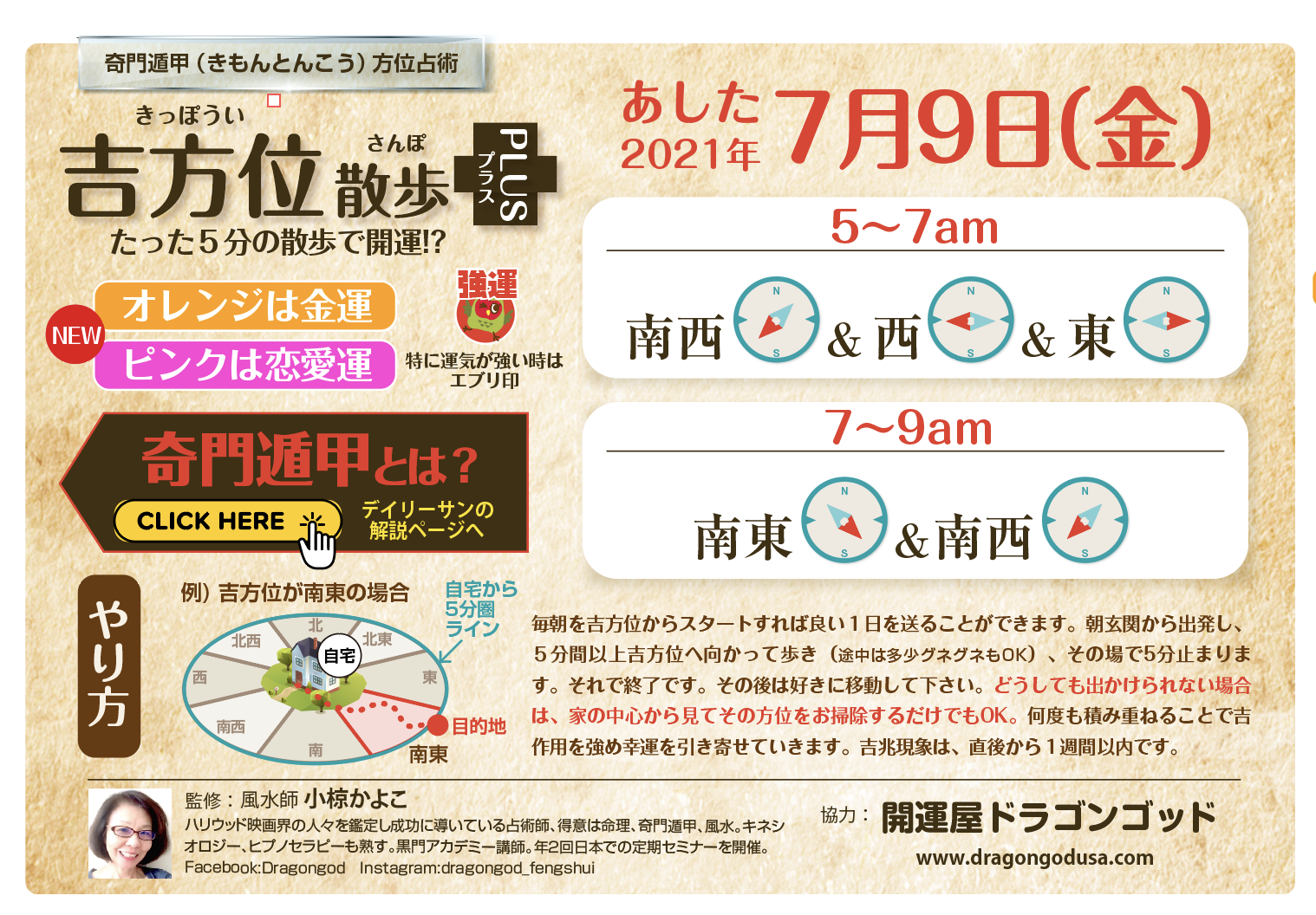 【明日と週末の運気】吉方位散歩 7月3日(土)〜6日(火)