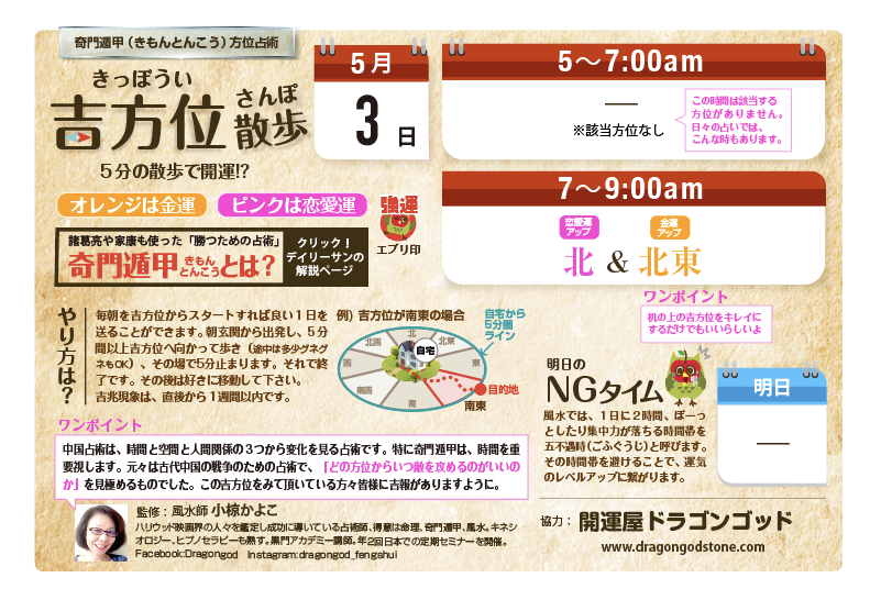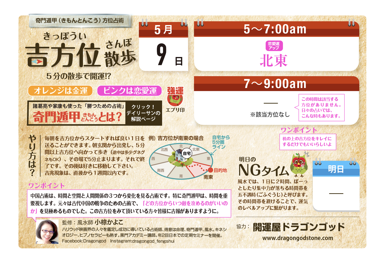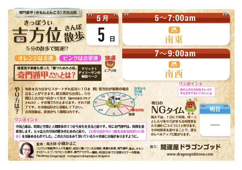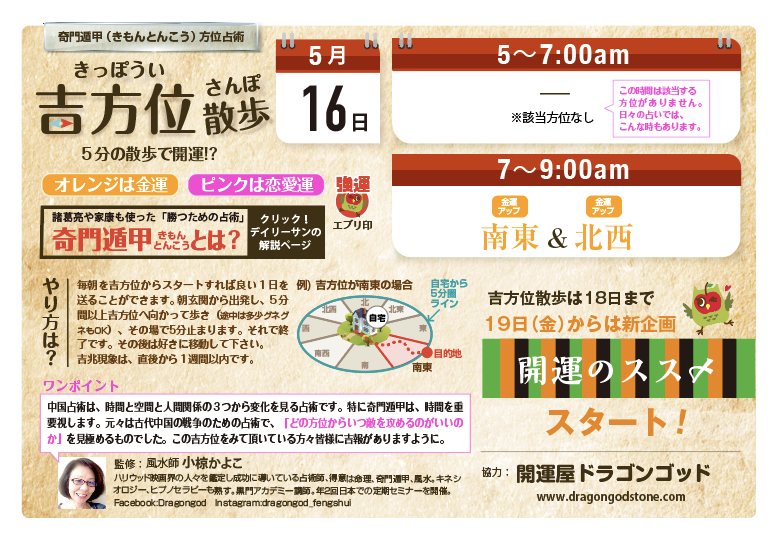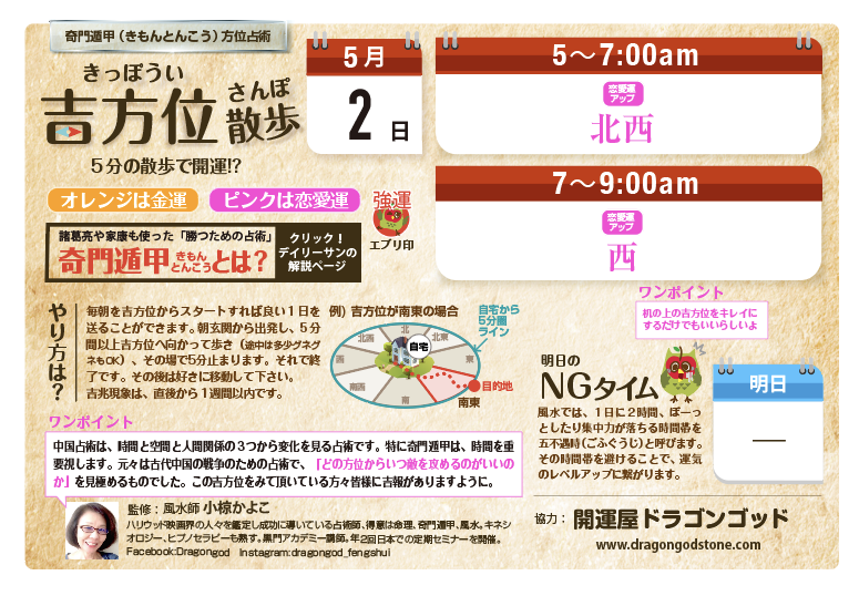 【明日の運気】吉方位散歩 5月6日(土)〜8日(月)