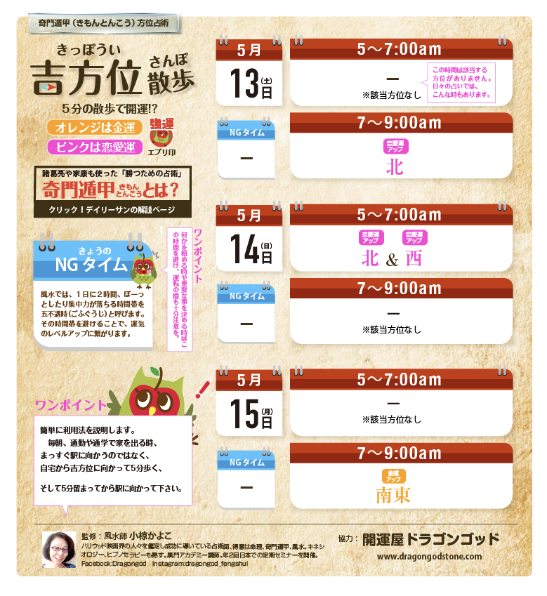 【明日の運気】吉方位散歩 5月13日(土)〜15日(月)