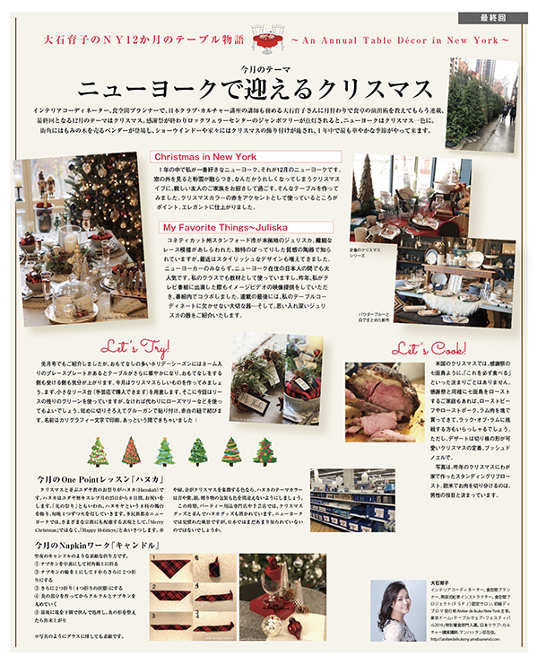 大石育子のNY12か月のテーブル物語 最終回