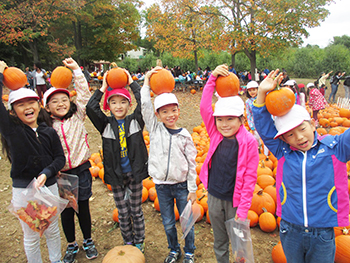 カボチャ狩りで秋を満喫 ニューヨーク育英学園