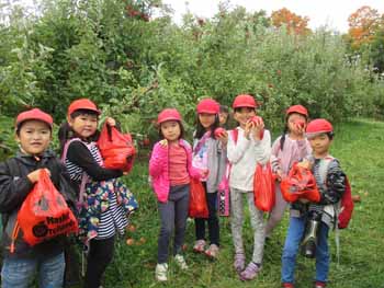 リンゴ狩りで秋を満喫 ニューヨーク育英学園
