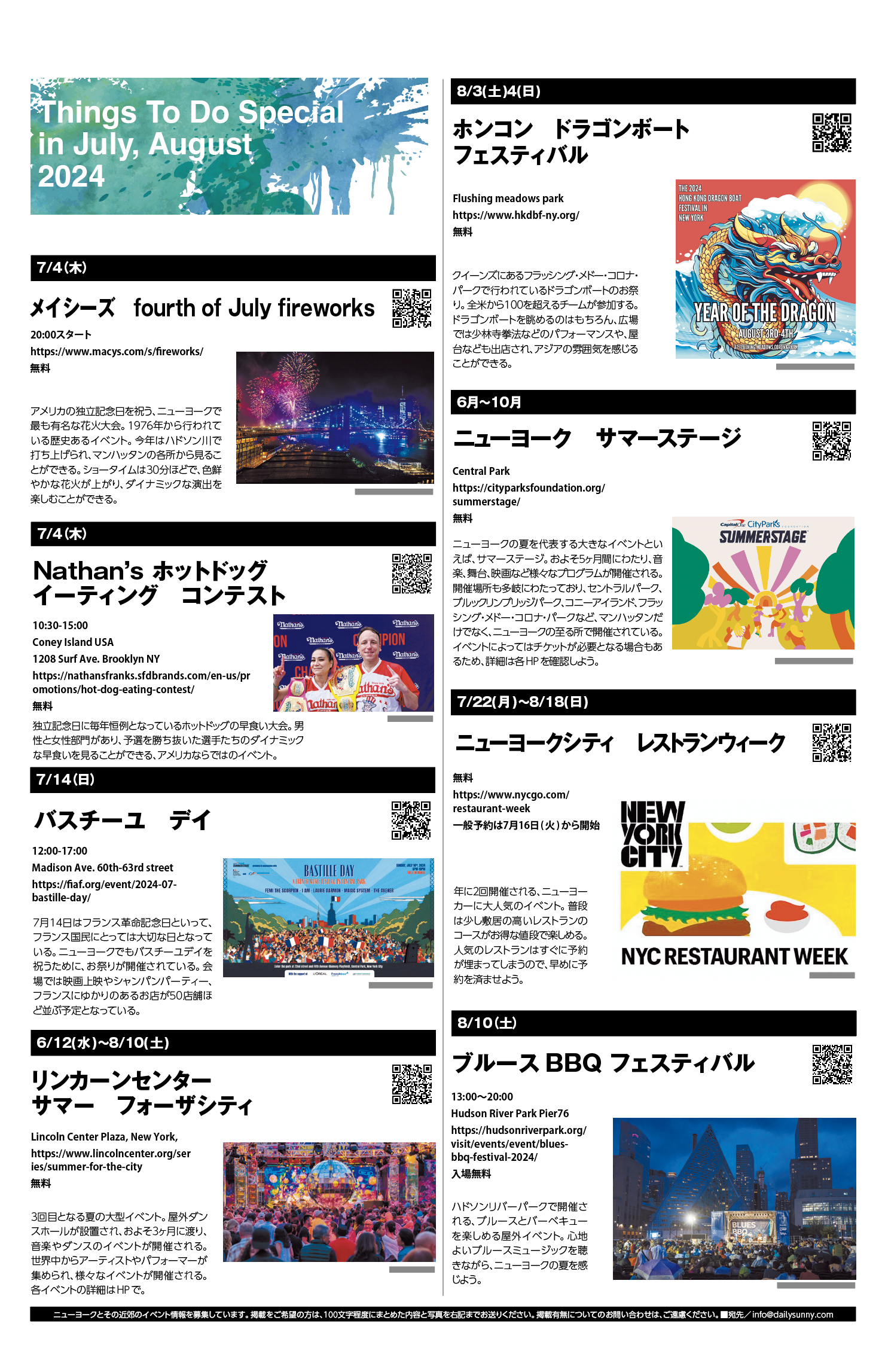 Things To Do Special in July, August イベント情報 2024年7、8月