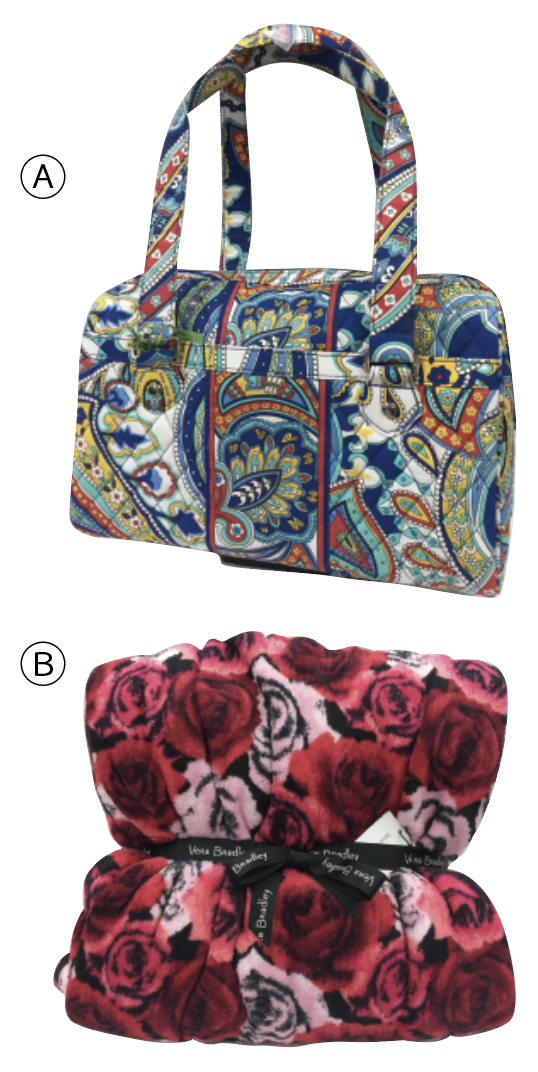 12. Ⓐヴェラ・ブラッドリーのバッグ Ⓑローズ柄ベッドスロー