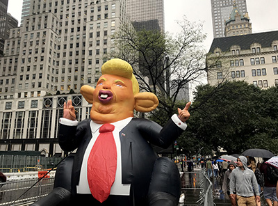 トランプ、巨大ネズミになって登場 5番街59丁目