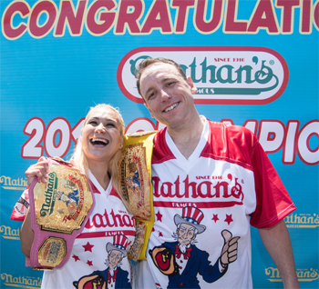 チェスナットさんと須藤さん連覇 恒例ホットドッグ早食い大会