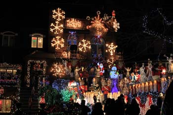 電飾ハウスに見物人殺到 NYPDが交通規制