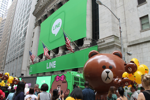 LINE、ウォール街をジャック 証券所が緑に染まる
