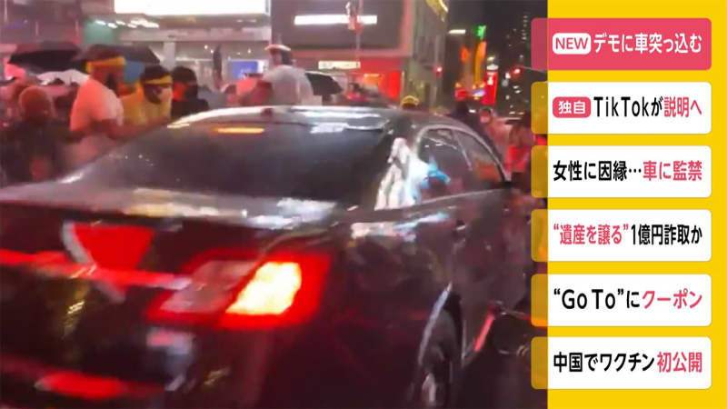 米・NY タイムズスクエアでデモ隊に車突っ込む