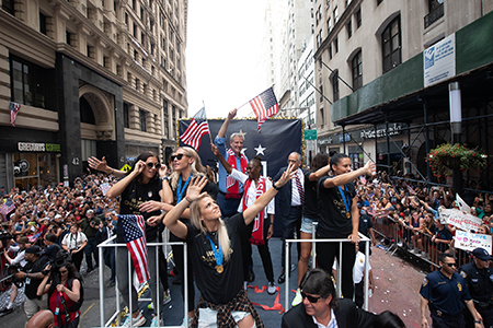 サッカー女子、盛大にパレード 30万人が「USA!」