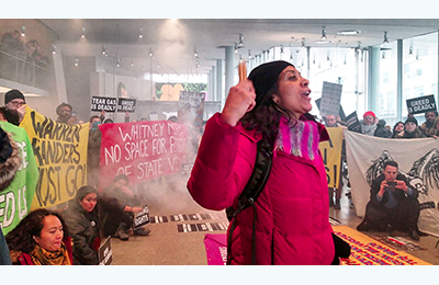 ホイットニー幹部の辞任求めデモ 「キャラバン」発射の催涙ガス製造会社を経営
