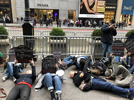 「サンディ」から6年、寝転び抗議 トランプタワー前