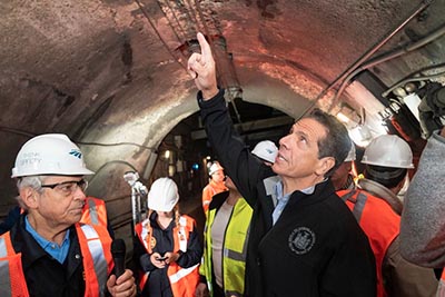 クオモ知事、鉄道トンネルで撮影 トランプ政権に損害アピール