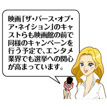 キャストが有権者登録サポート ハミルトン劇場前でキャンペーン
