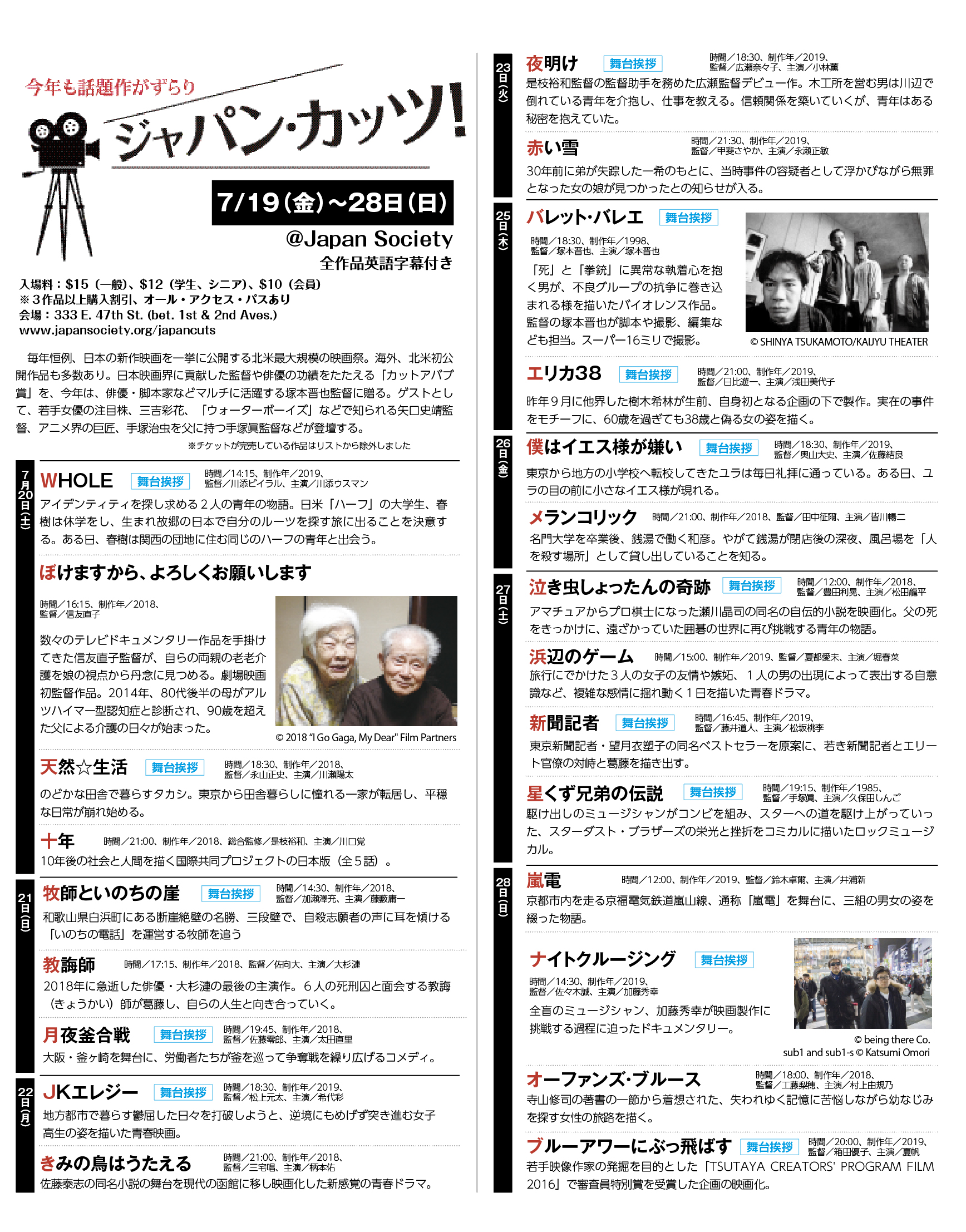 7月:ジャパン・カッツ 今年も話題作がずらり 7/19(金)〜28(日)@Japan Society