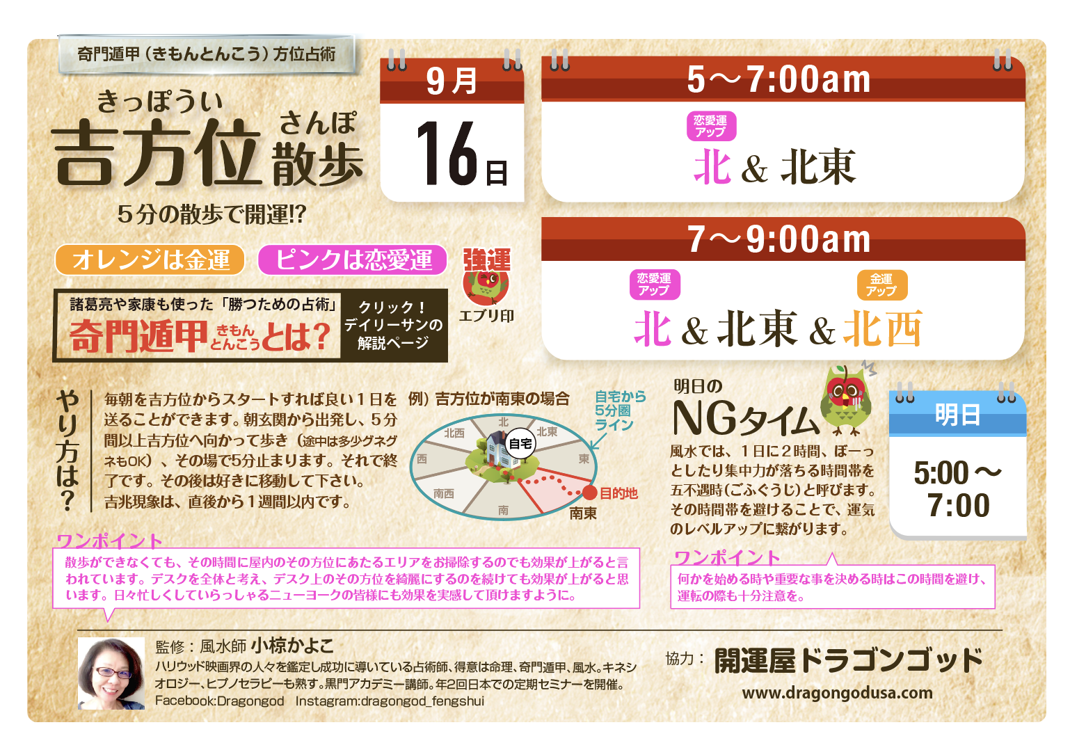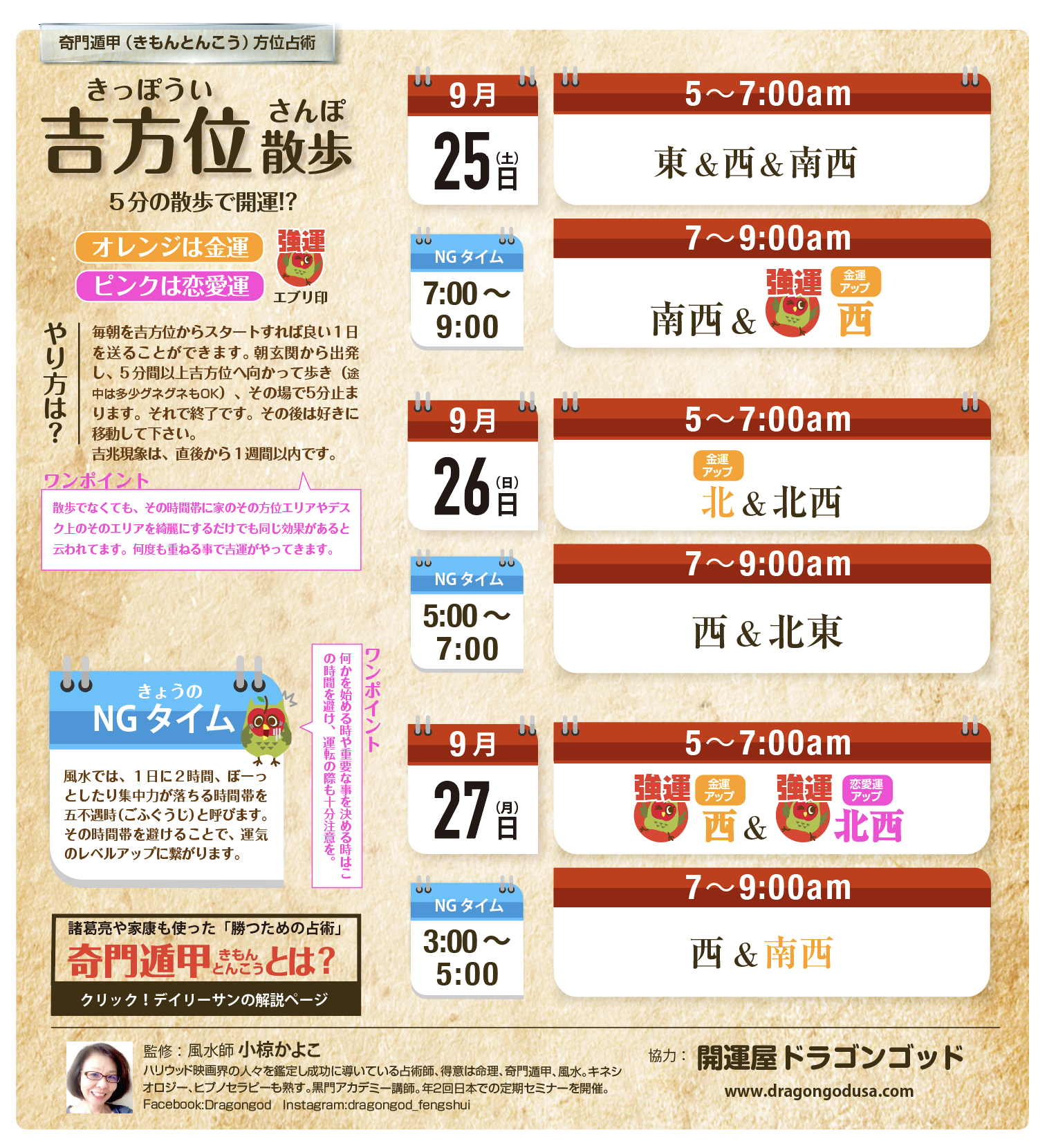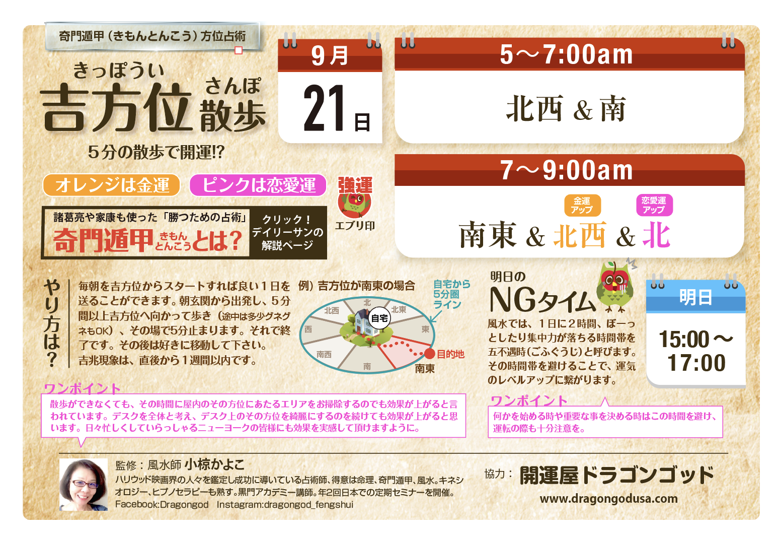 【明日から週末の運気】吉方位散歩 9月25日(土)〜27日(月)