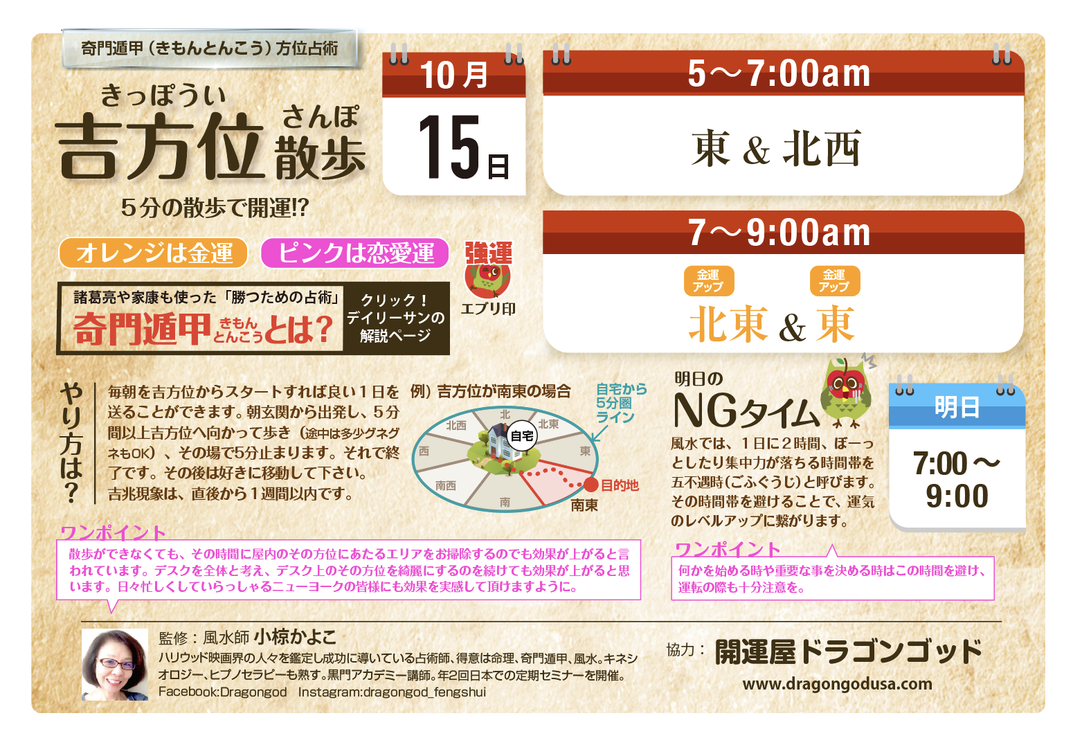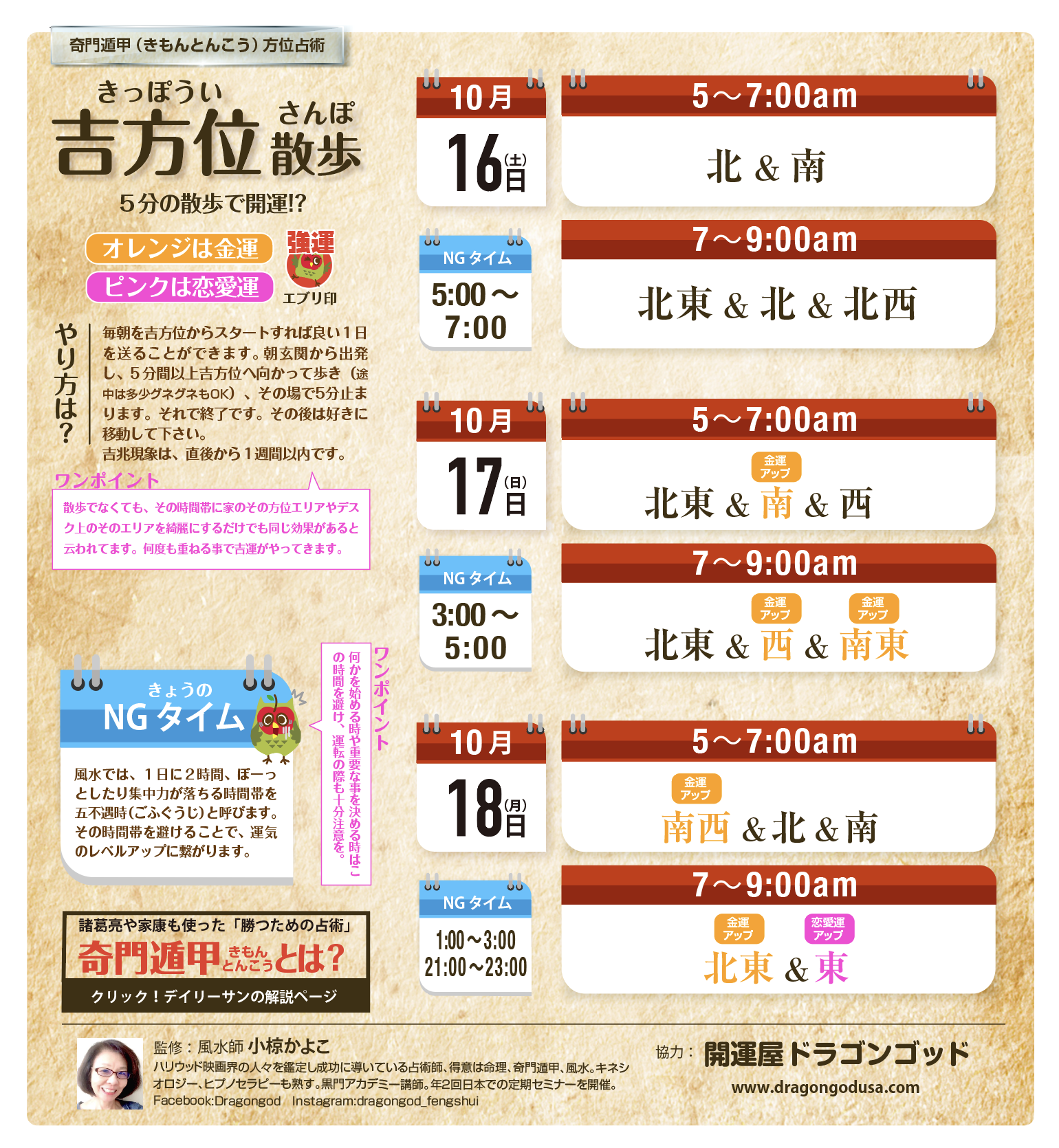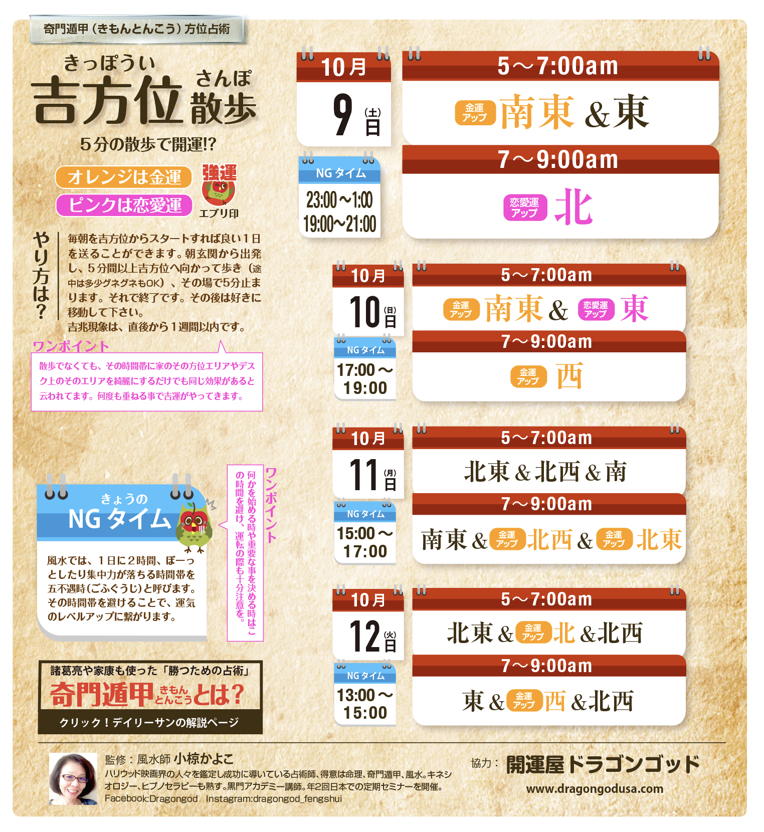 【週末と休日の運気】 吉方位散歩 10月9日(土)〜12日(火)