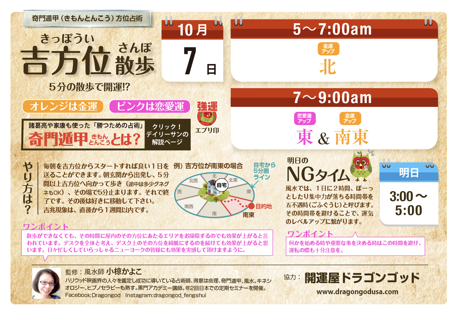 【明日の運気】吉方位散歩 10月2日(土)〜4日(月)