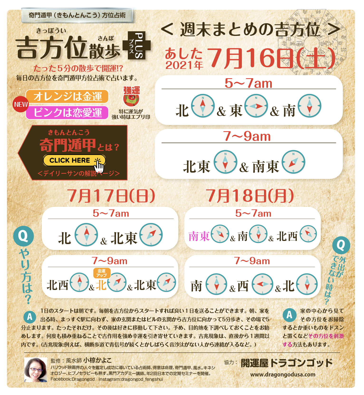 【明日と週末の運気】吉方位散歩 7月17日(土)〜19日(月)