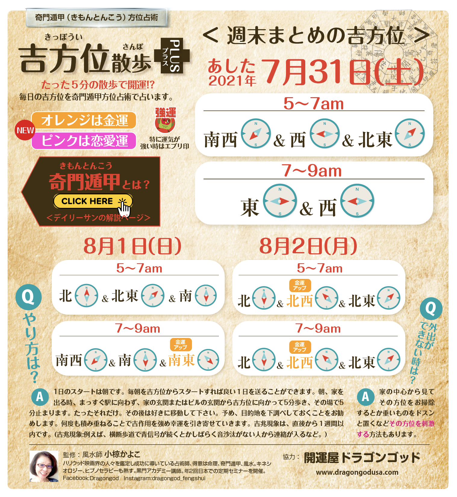 【明日と週末の運気】吉方位散歩 7月24日(土)〜26日(月)