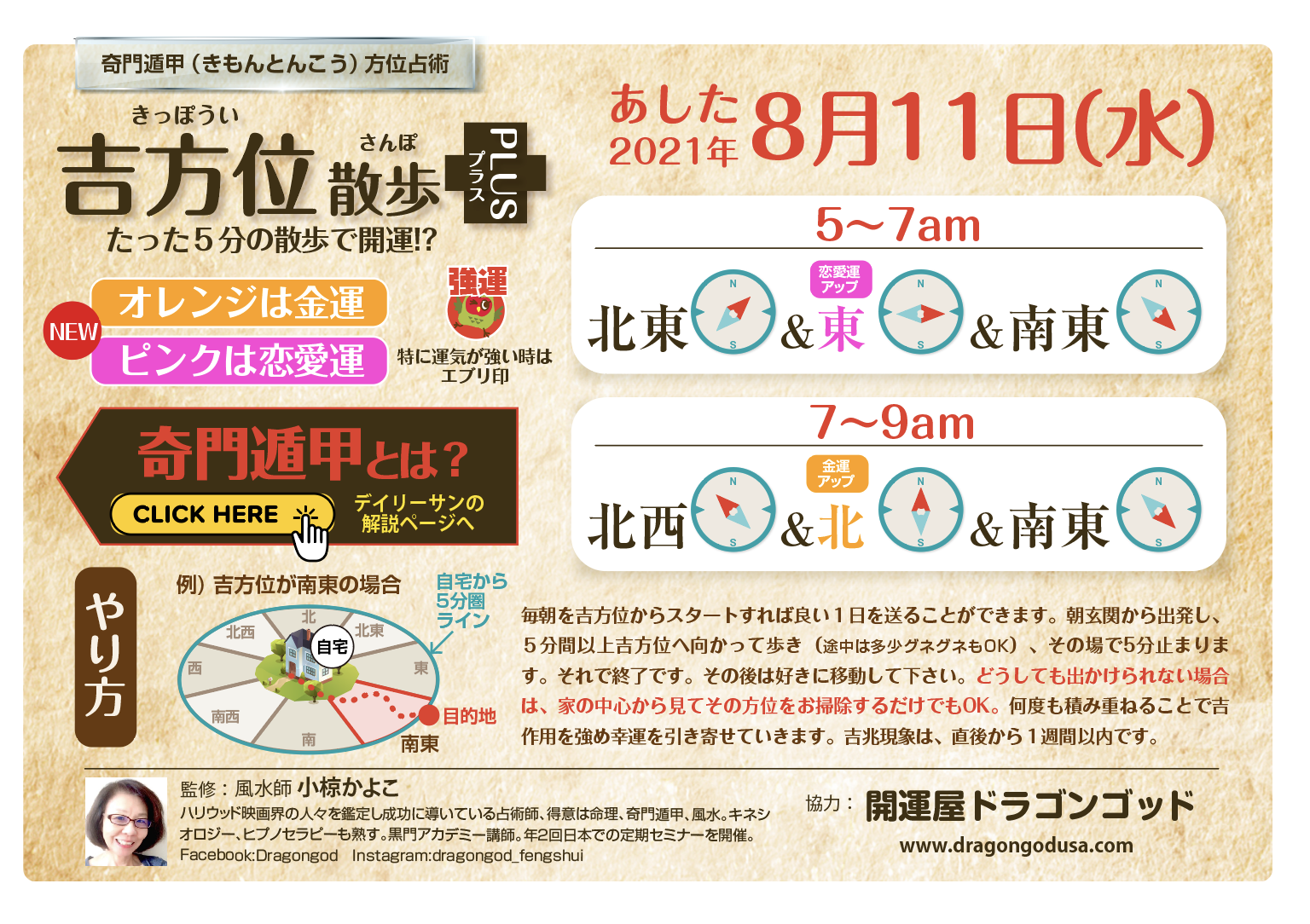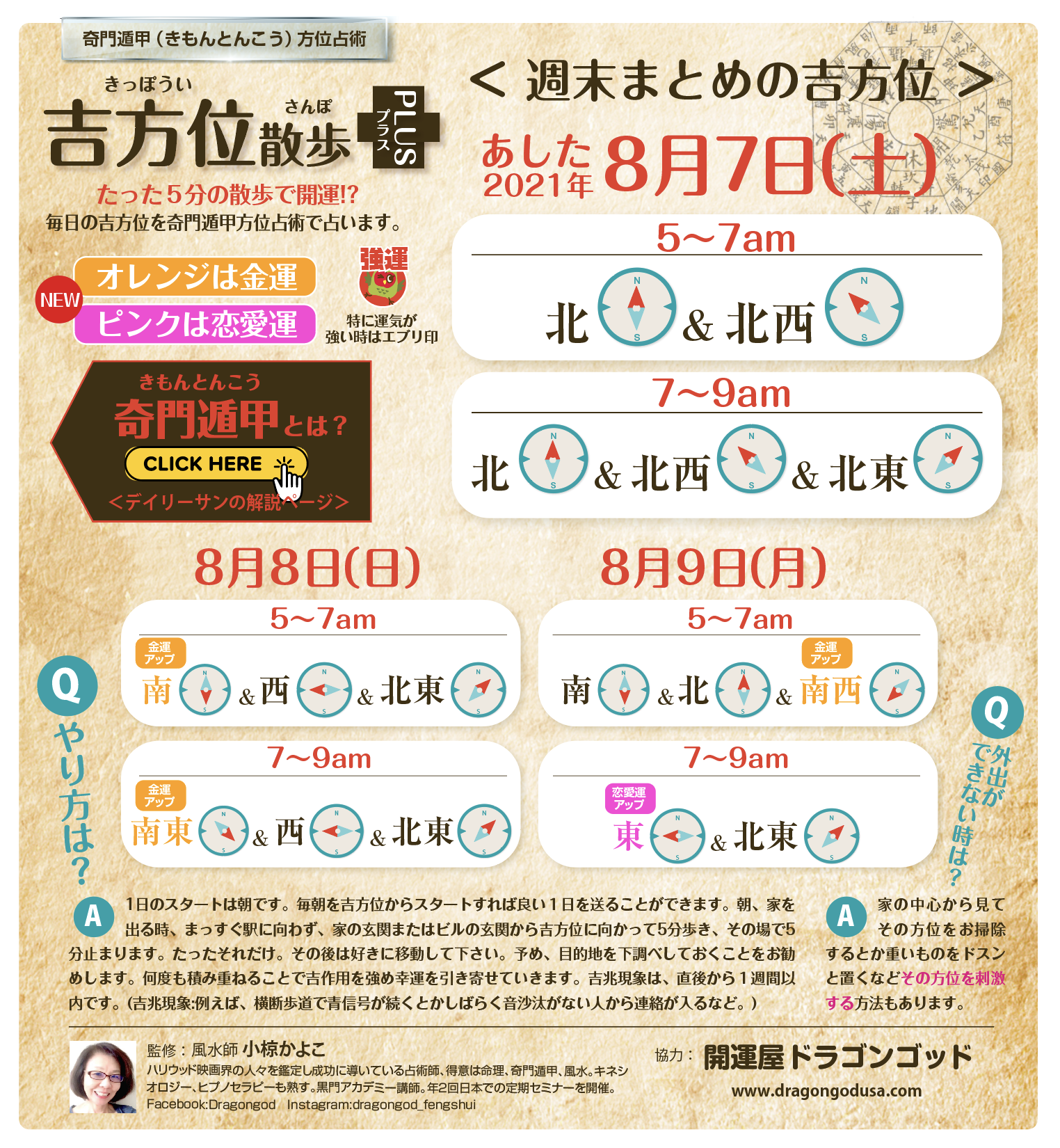 【明日の運気】吉方位散歩 8月7日(土)〜9日(月)