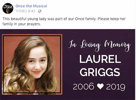 ローレル・グリッグさん、13歳 ブロードウェー女優、早すぎる死に劇場街沈む