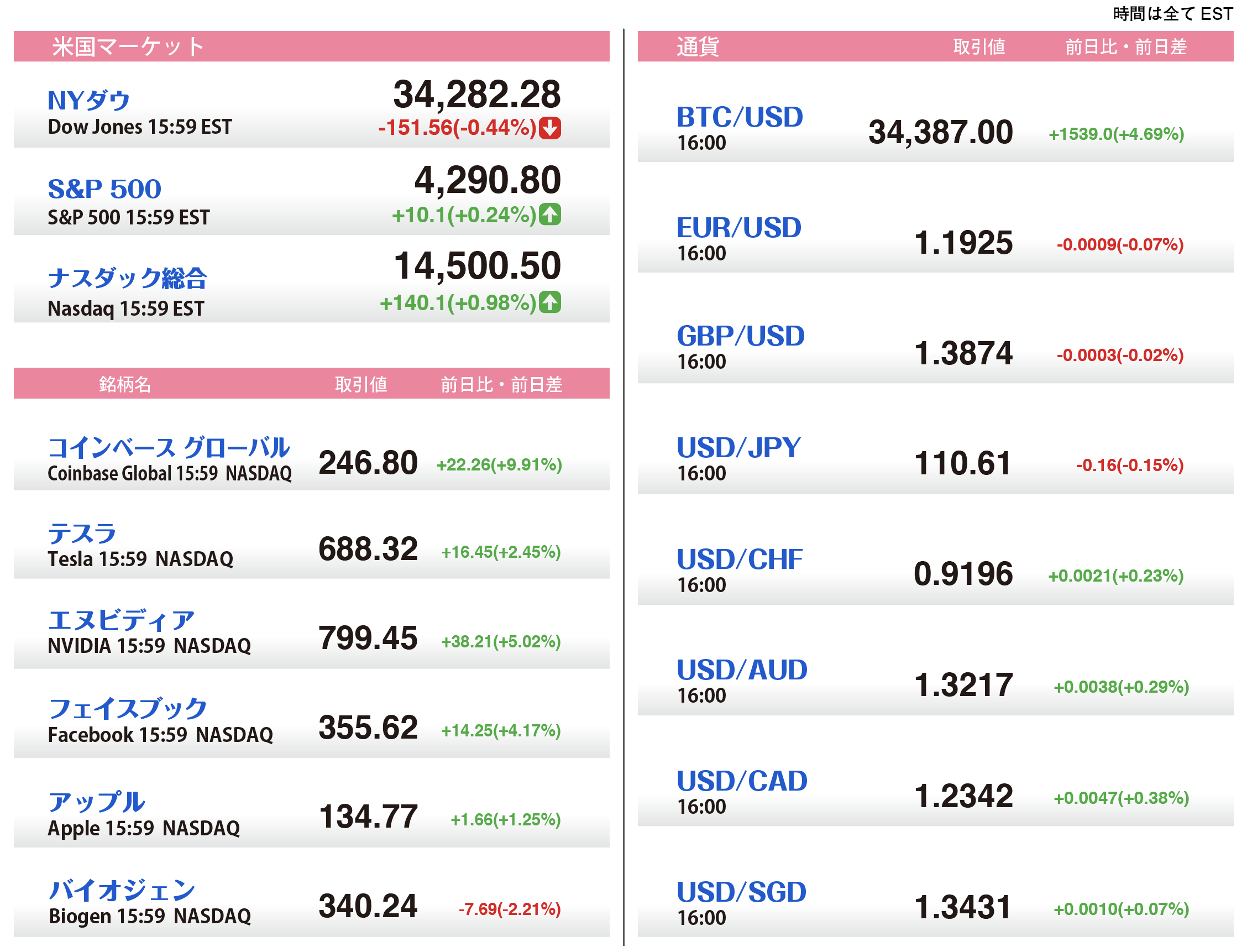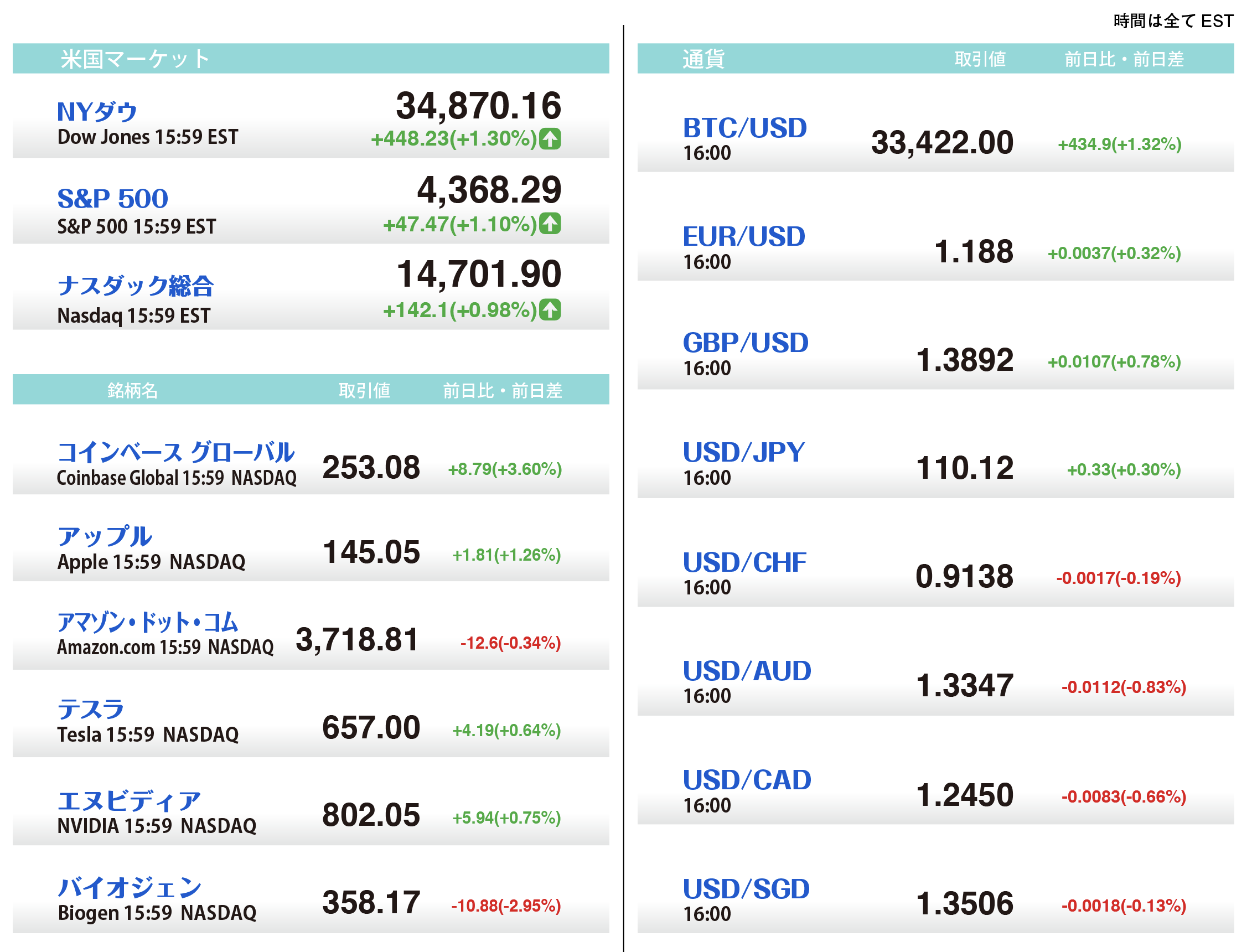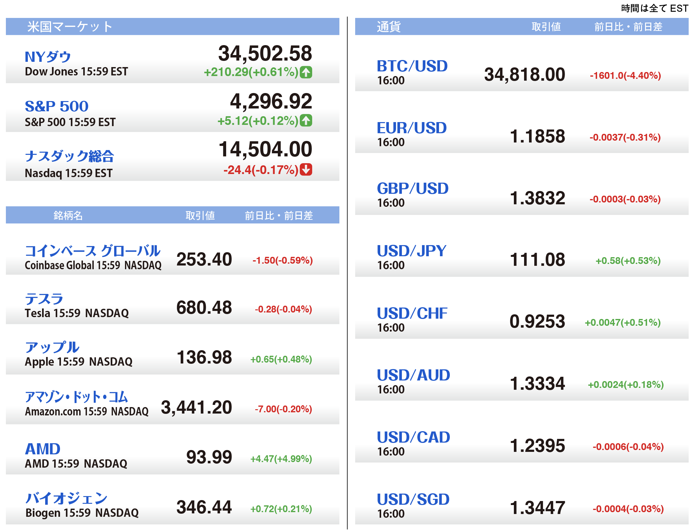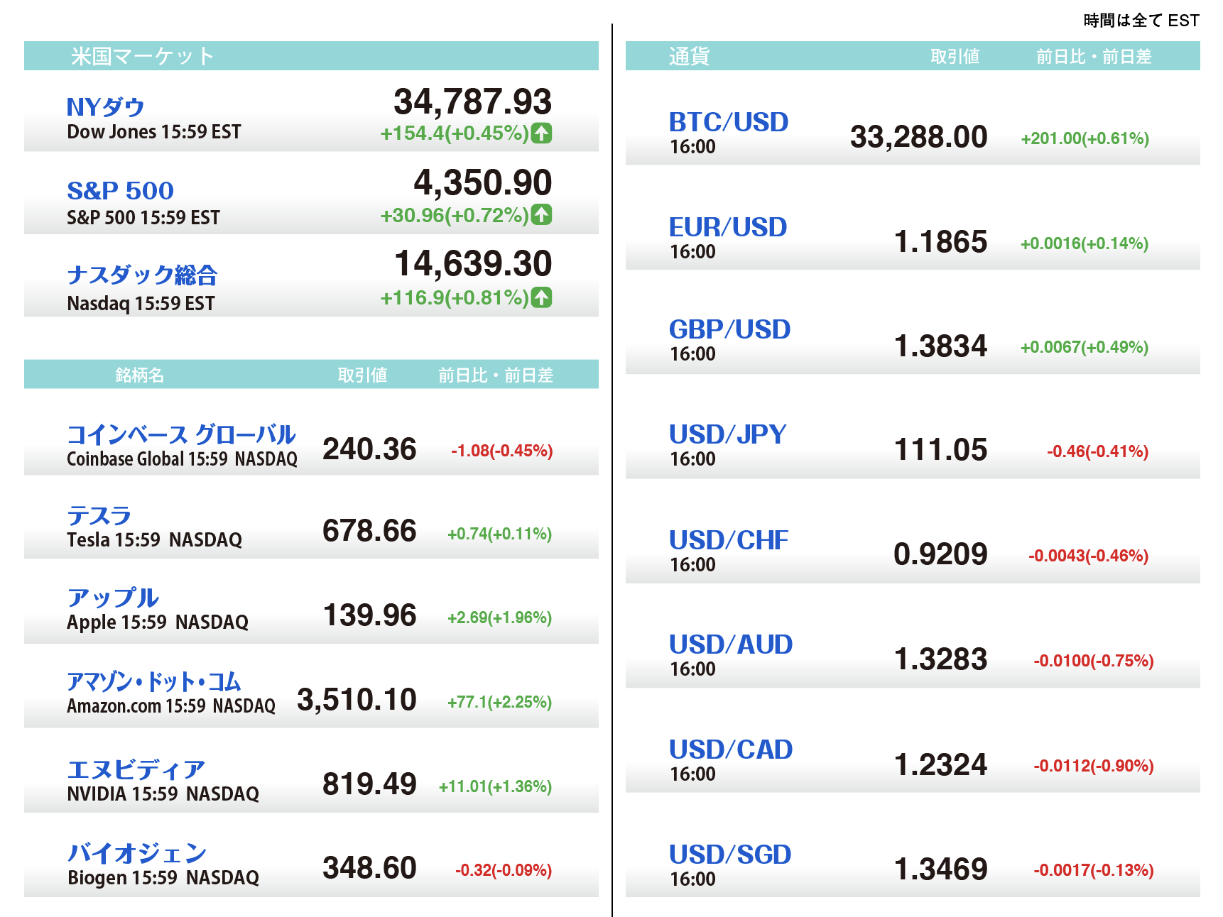U.S. Market Info. 07/09/2021