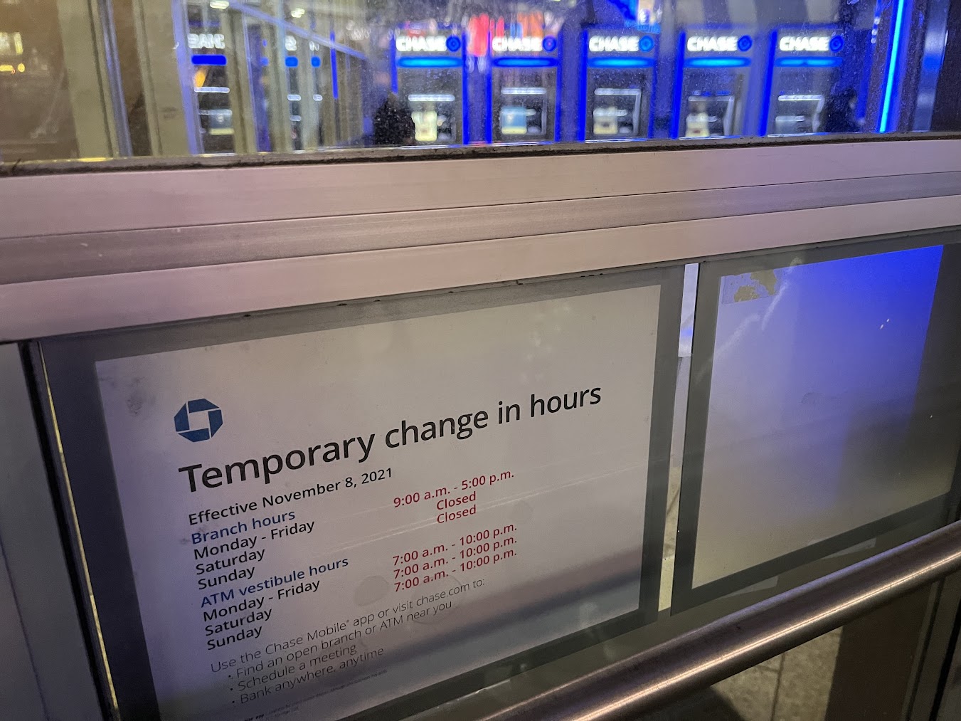 チェース銀行のATMコーナー 一部の支店、24時間営業停止