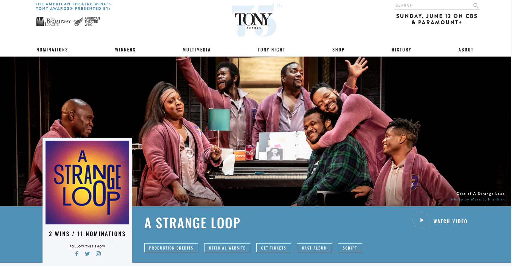 「ア・ストレンジ・ループ」、作品賞に輝く トニー賞ミュージカル部門