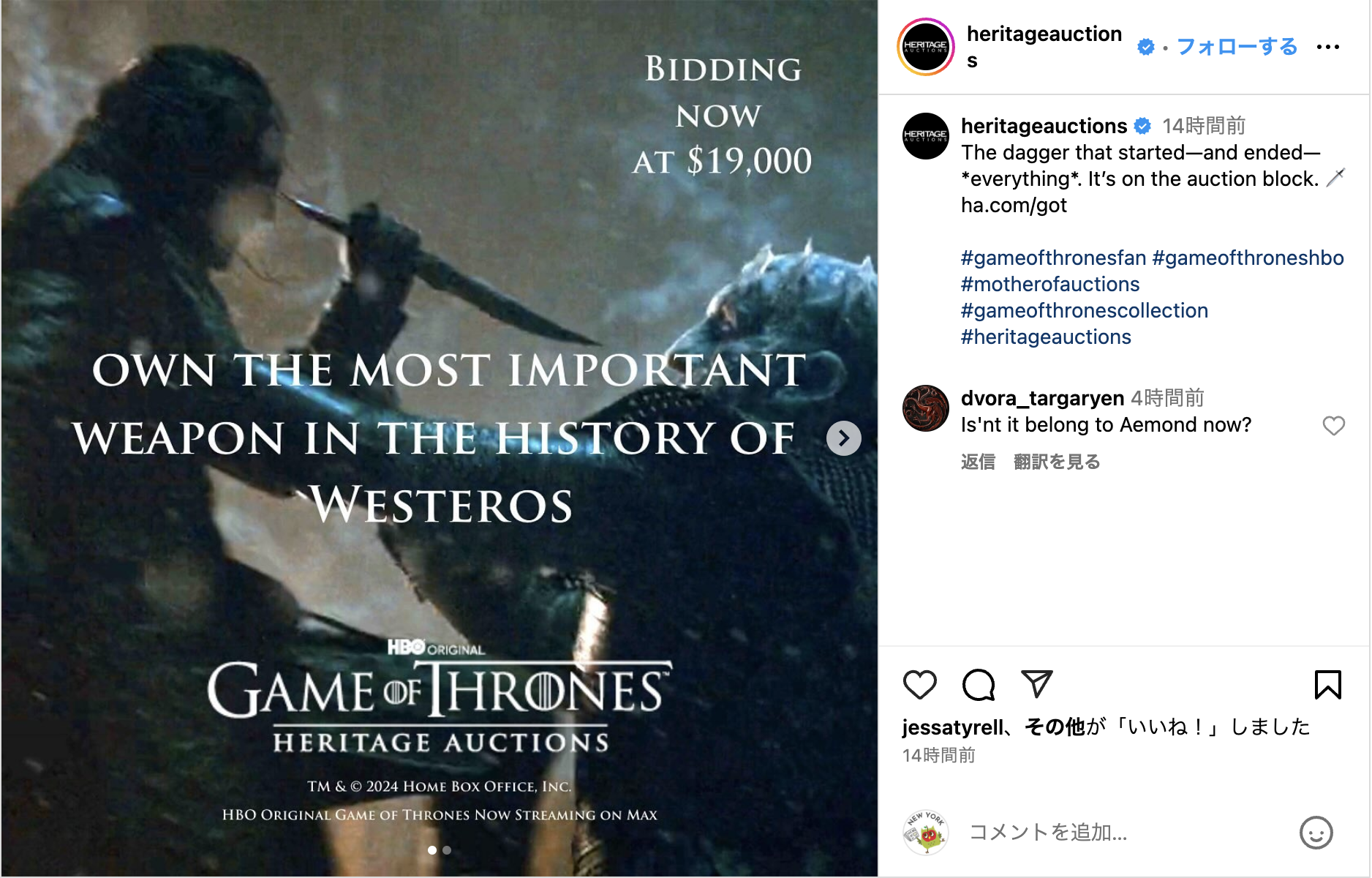 オークション前内覧会を開催中 HBO「Game of Thrones」