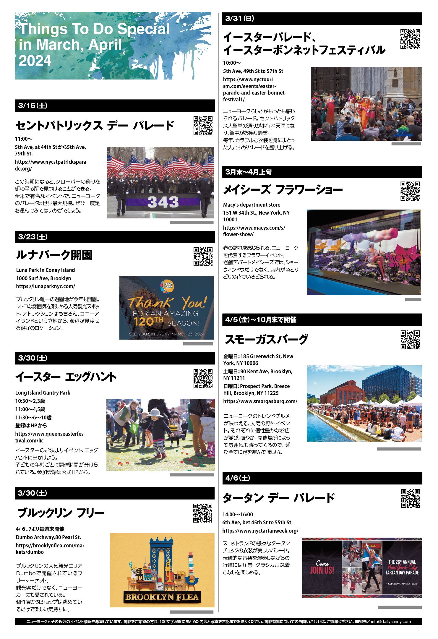 Things To Do Special in March, April イベント情報 2024年3、4月