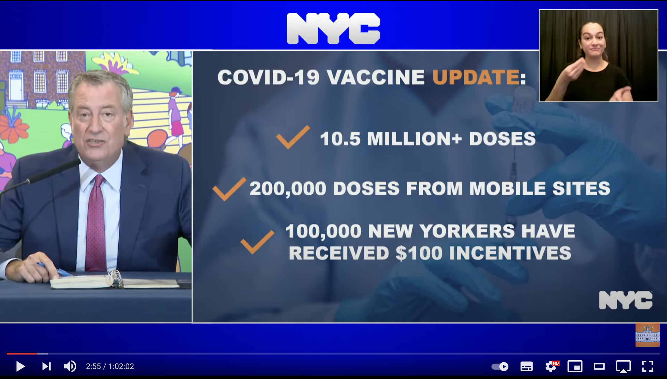 NY市、全職員にワクチン接種義務化 「一丸となって、コロナに終止符を」とデブラシオ市長