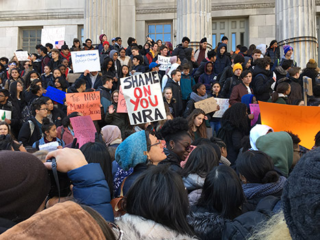 銃規制求め立ち上がる 学校ストライキ、NYでも