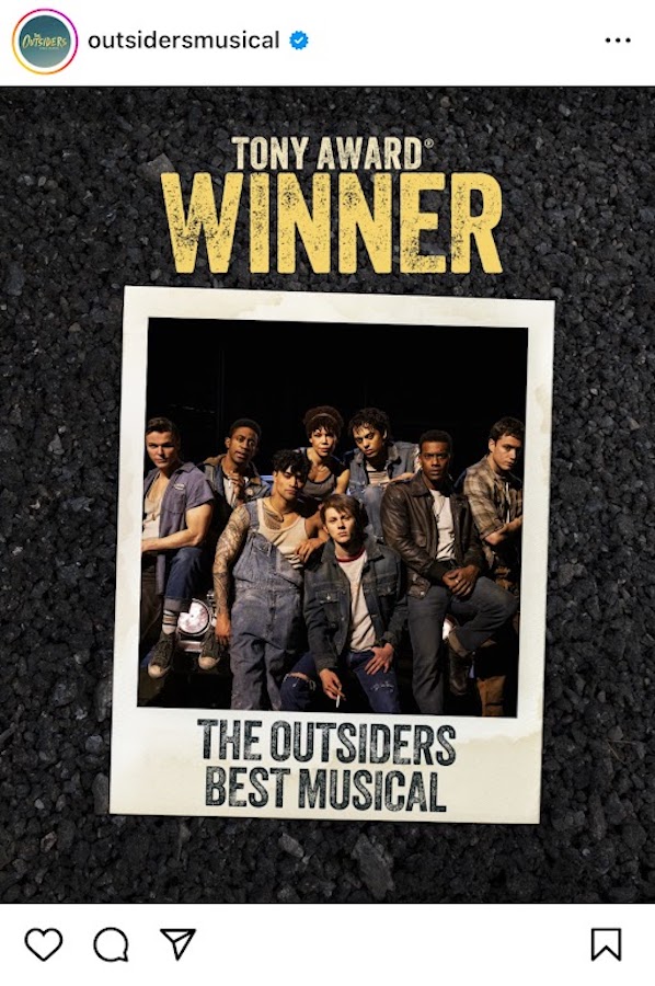 トニー賞の作品賞「ザ・アウトサイダーズ」 ラドクリフさん、助演男優賞受賞