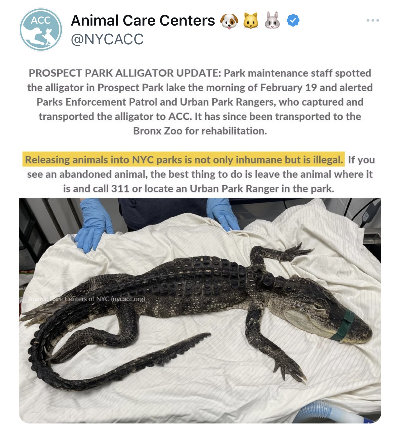 プロスペクトパーク湖でワニ発見 飼い主が放置、昏睡で動けず