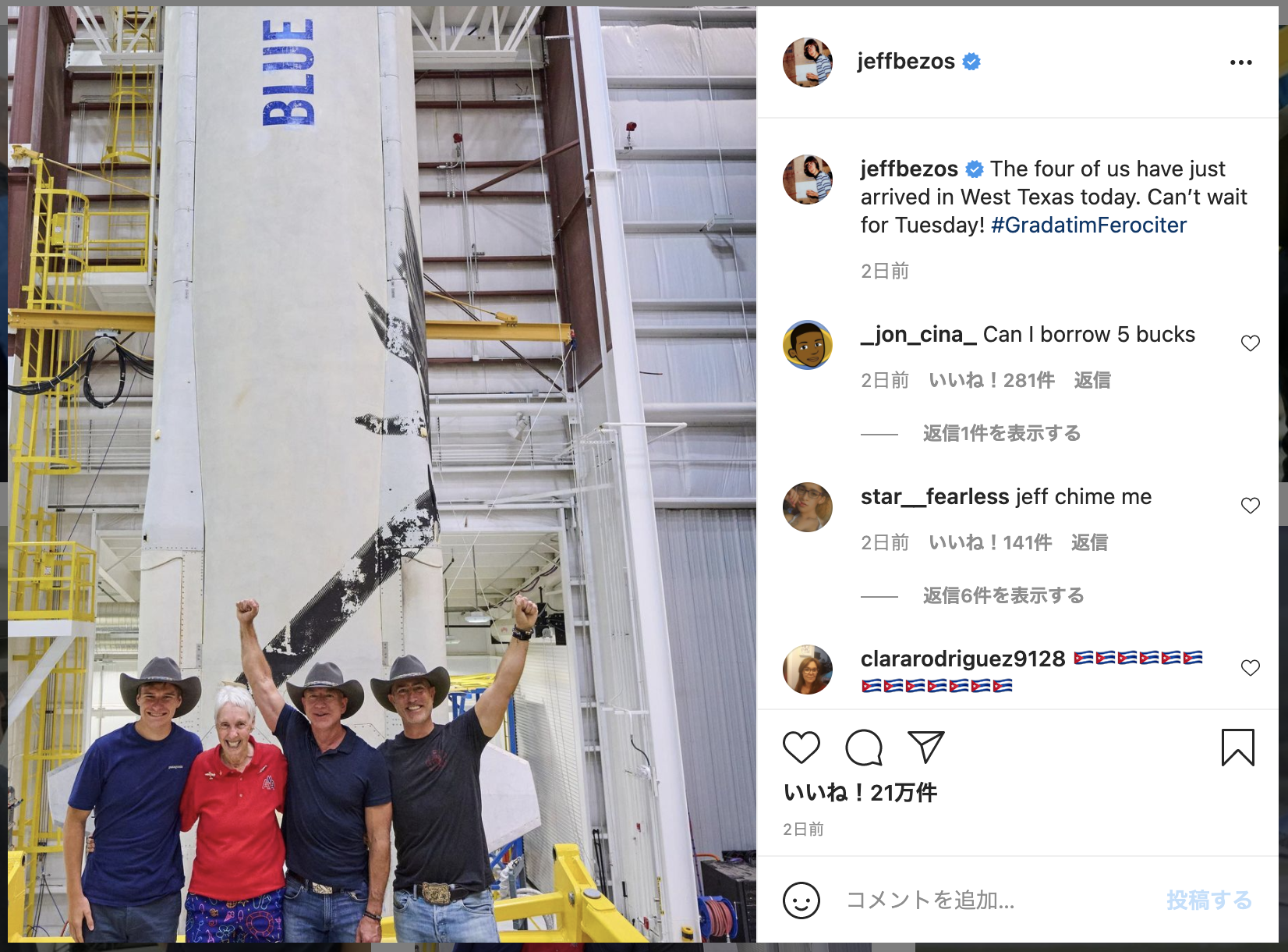 18歳大学生、宇宙旅行に参加へ ベゾス氏に同行、20日に打ち上げ