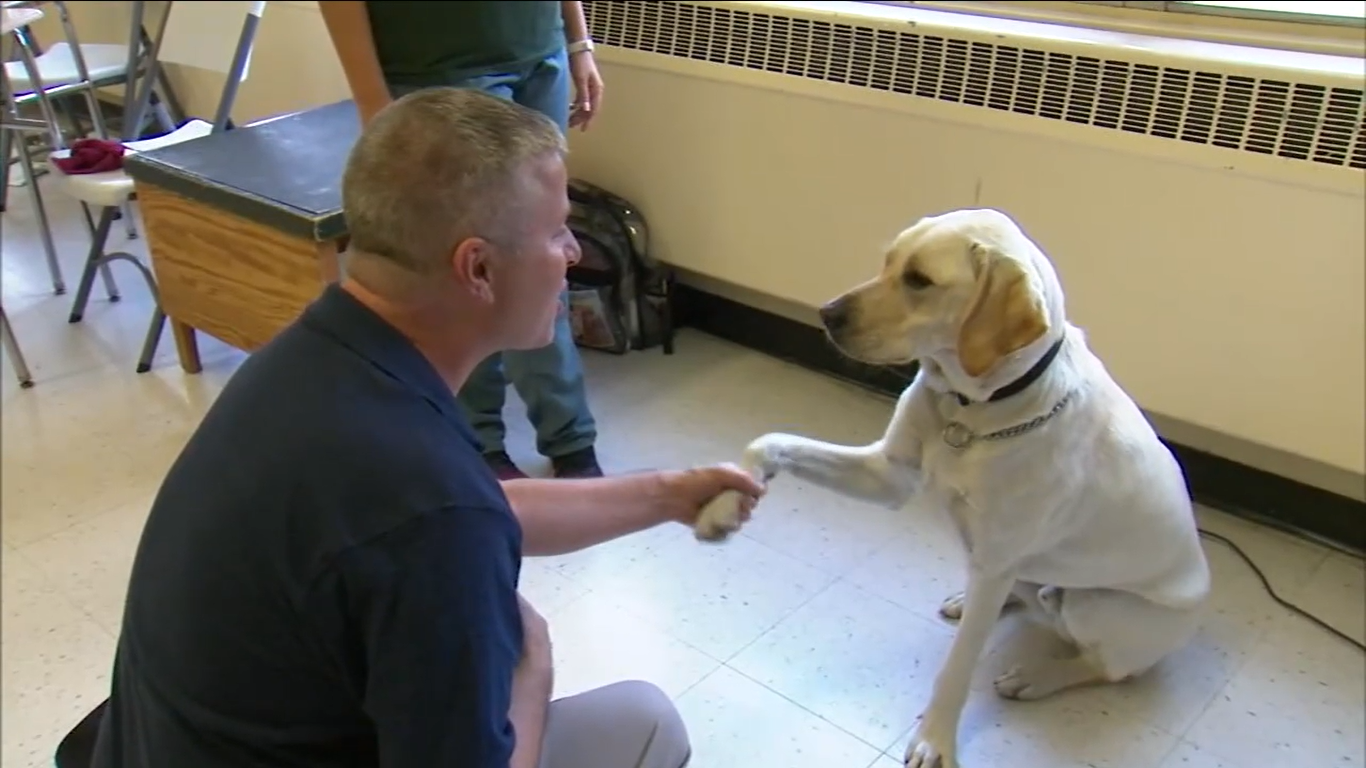 自殺願望警察官、犬と触れ合い 受刑者が訓練する特別プログラム